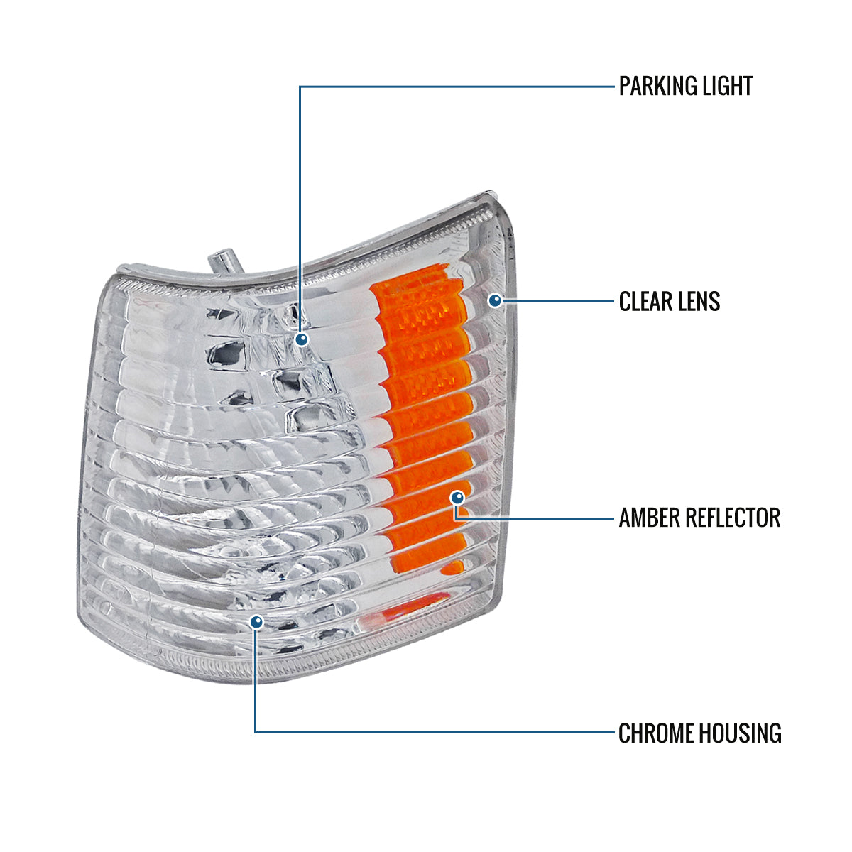 Ronnin - Fits 1993-1998 Jeep Grand Cherokee Corner Lights Replacement Parking Lamps Assembly Pair | Chrome