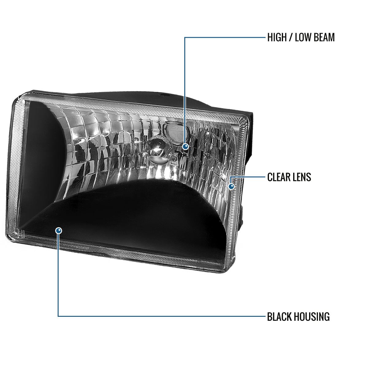 Ronnin - Fits 1993-1998 Jeep Grand Cherokee Factory Replacement Headlights Assembly Pair | Black