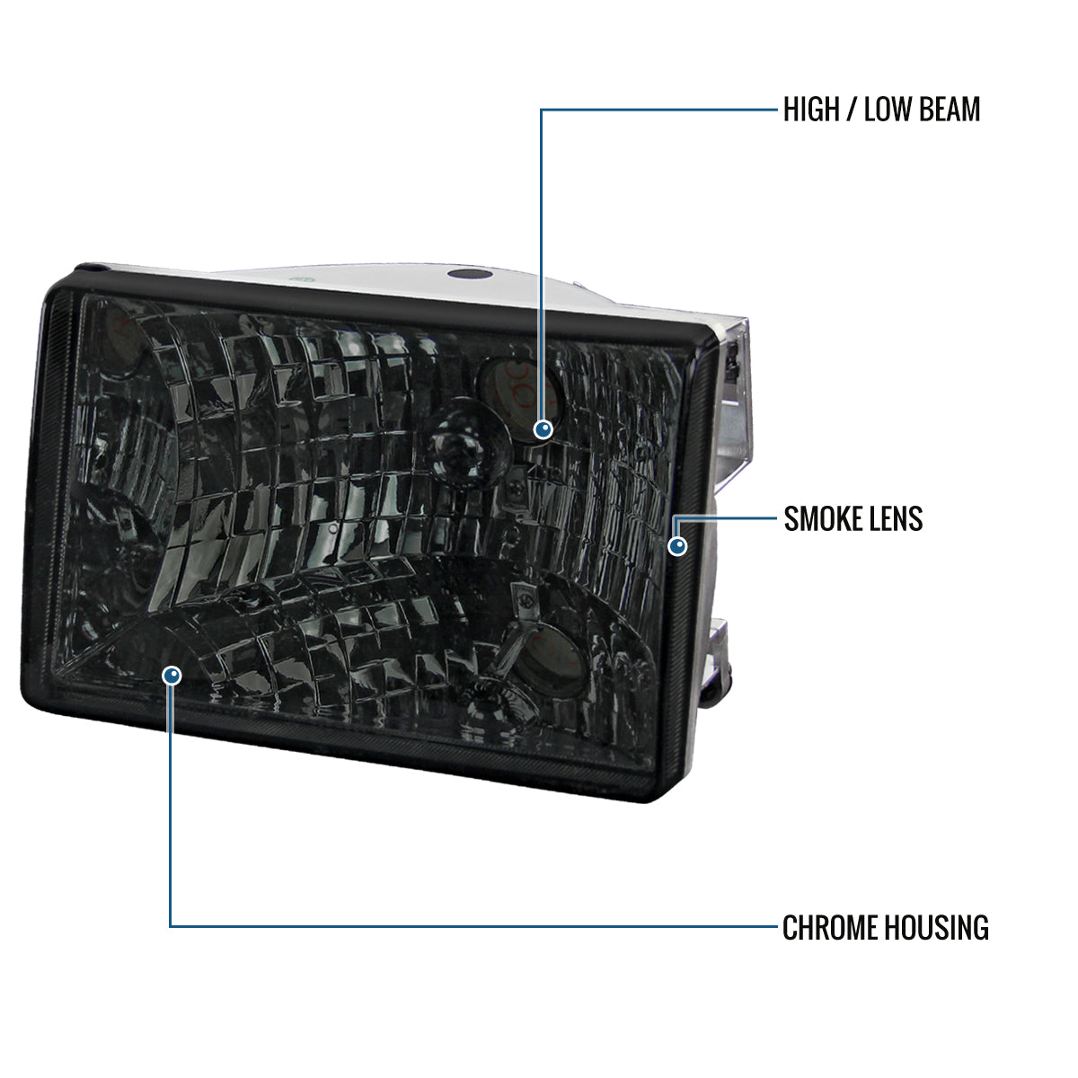 Ronnin - Fits 1993-1998 Jeep Grand Cherokee Factory Replacement Headlights Assembly Pair | Smoke