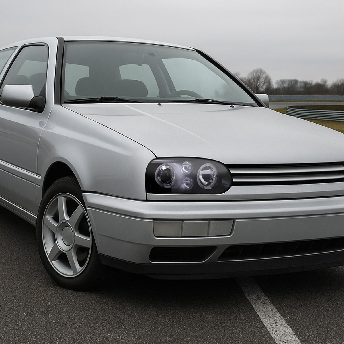 Ronnin - Fits 1993-1998 Volkswagen Golf Cabrio Upgrade Replacement LED Dual Rims Projector Headlights Assembly Pair | Black Smoke