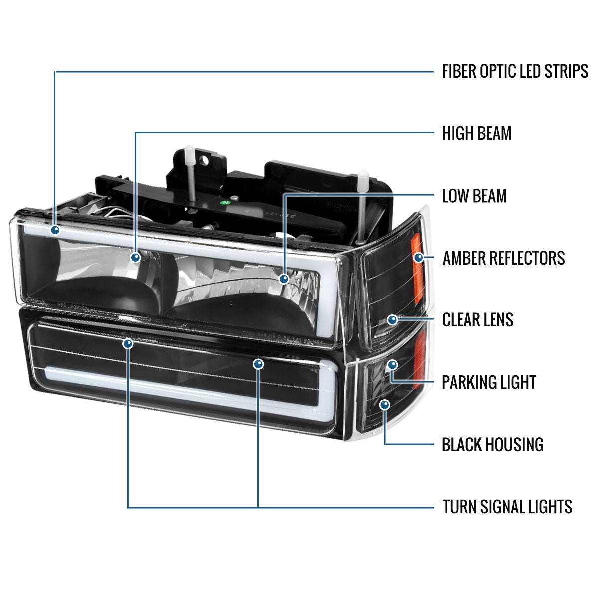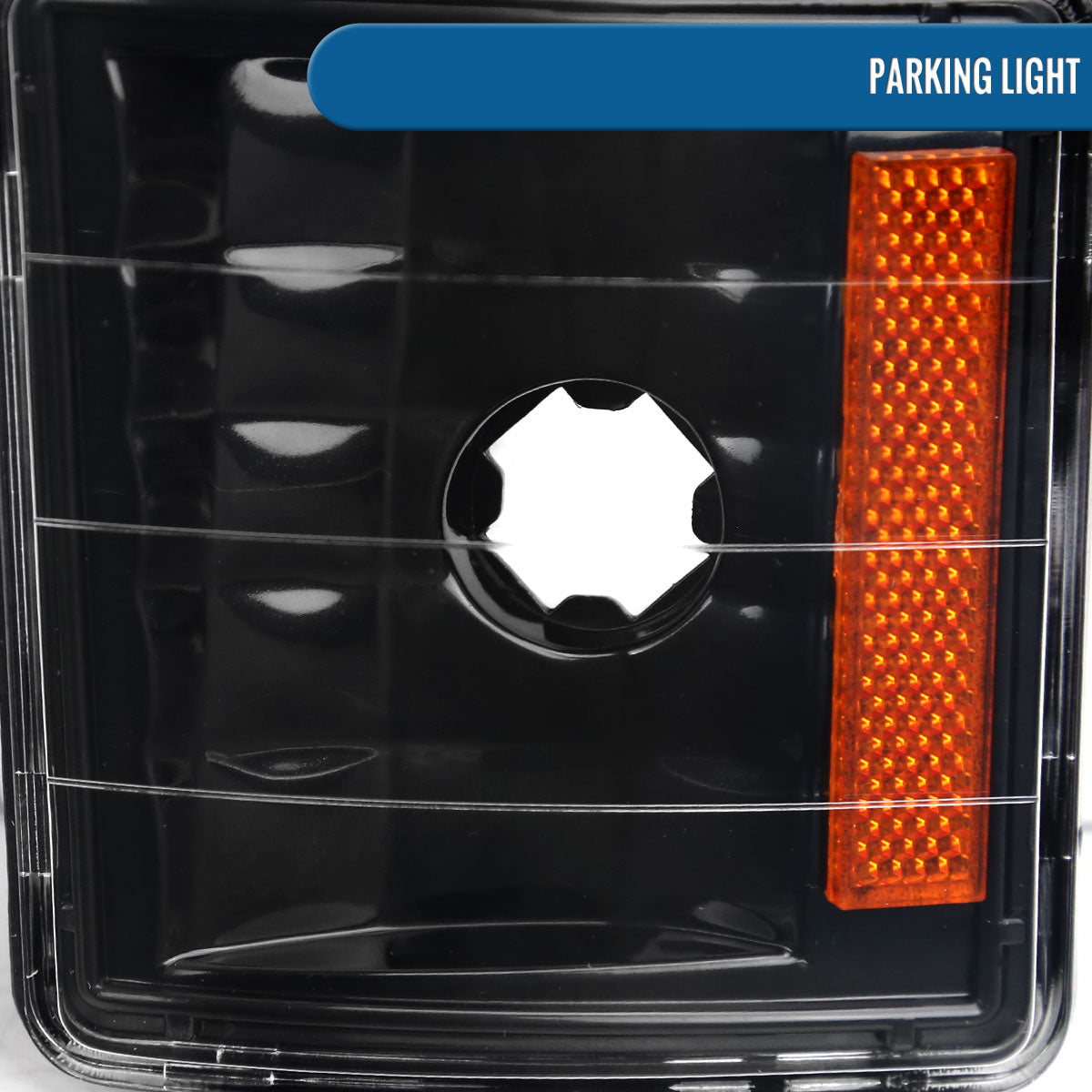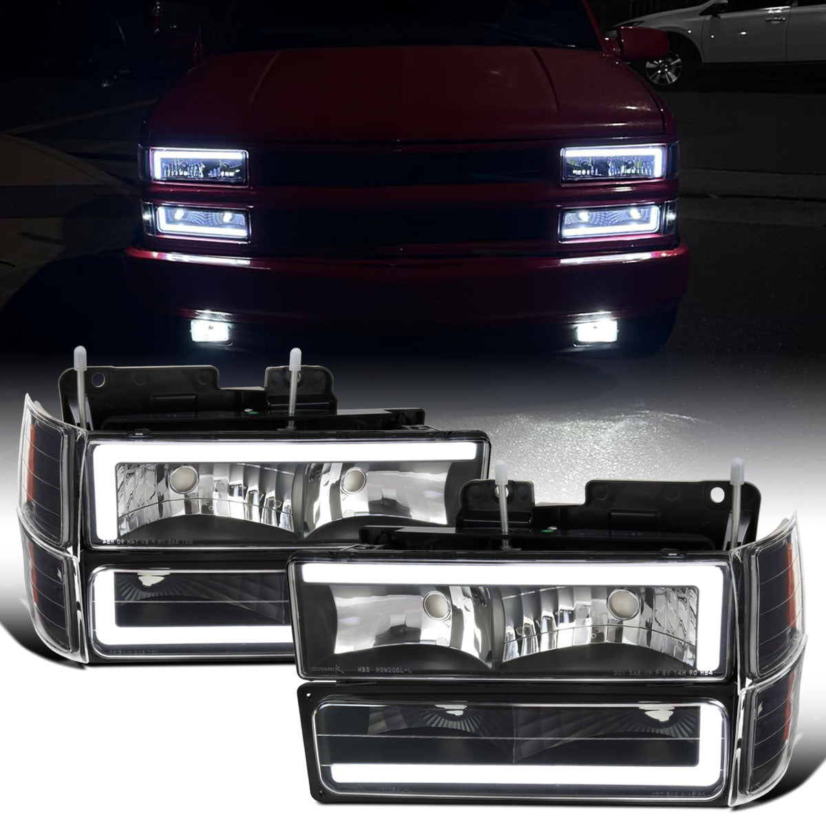 Ronnin - Fits 1994-1998 Chevy C10 C/K Silverado Suburban Tahoe LED Tube Headlights + Corner Bumper Parking Lights Assembly Pair | Black