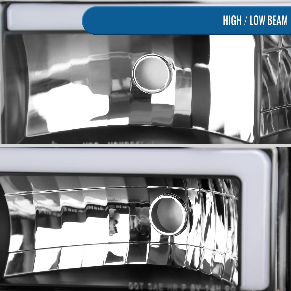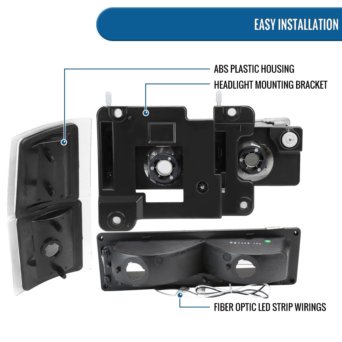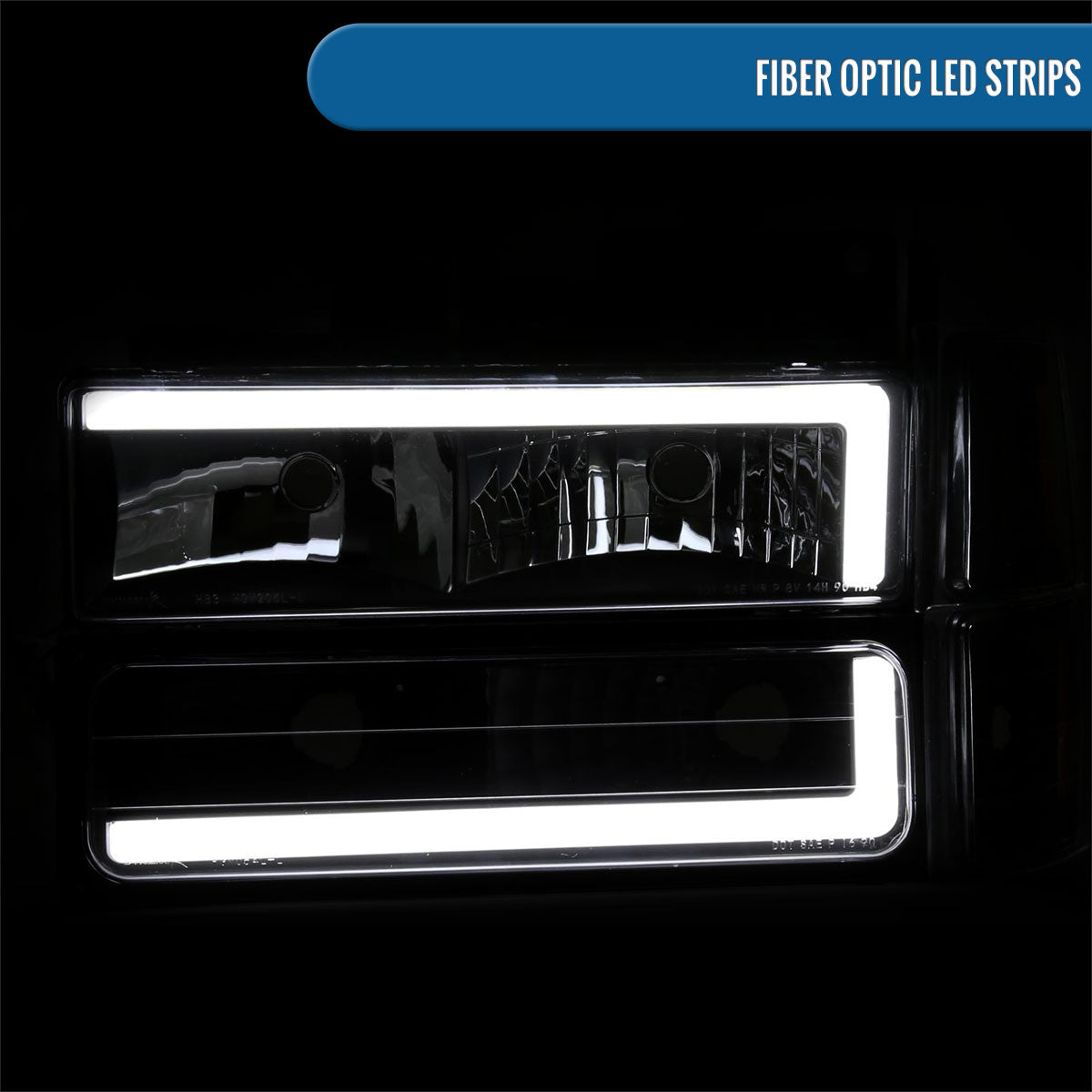 Ronnin - Fits 1994-1998 Chevy C10 C/K Silverado Suburban Tahoe LED Tube Headlights + Corner Bumper Parking Lights Assembly Pair | Black