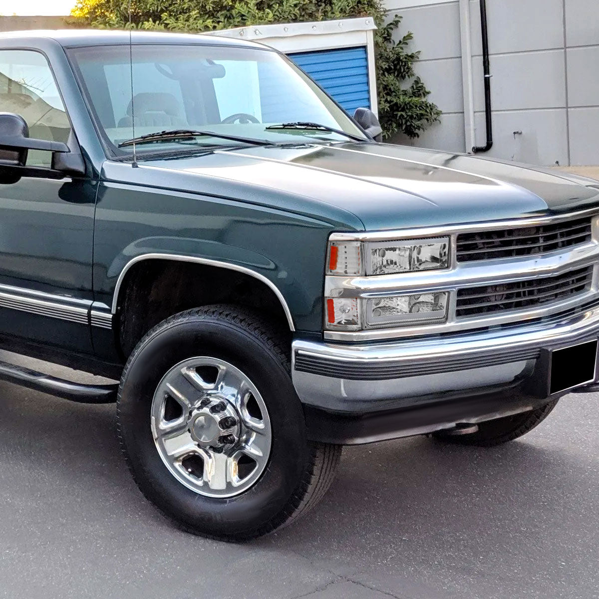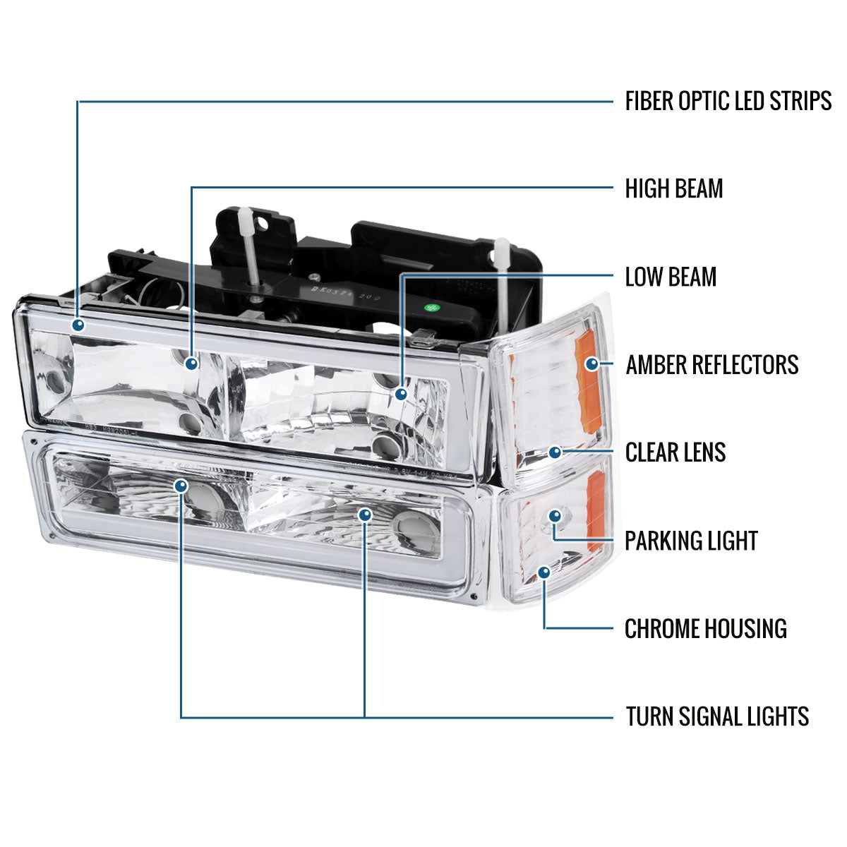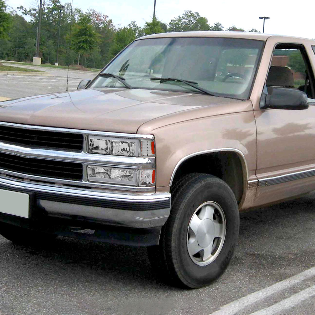 Ronnin - Fits 1994-1998 Chevy C10 C/K Silverado Suburban Tahoe LED Tube Headlights + Corner Bumper Parking Lights Assembly Pair | Chrome