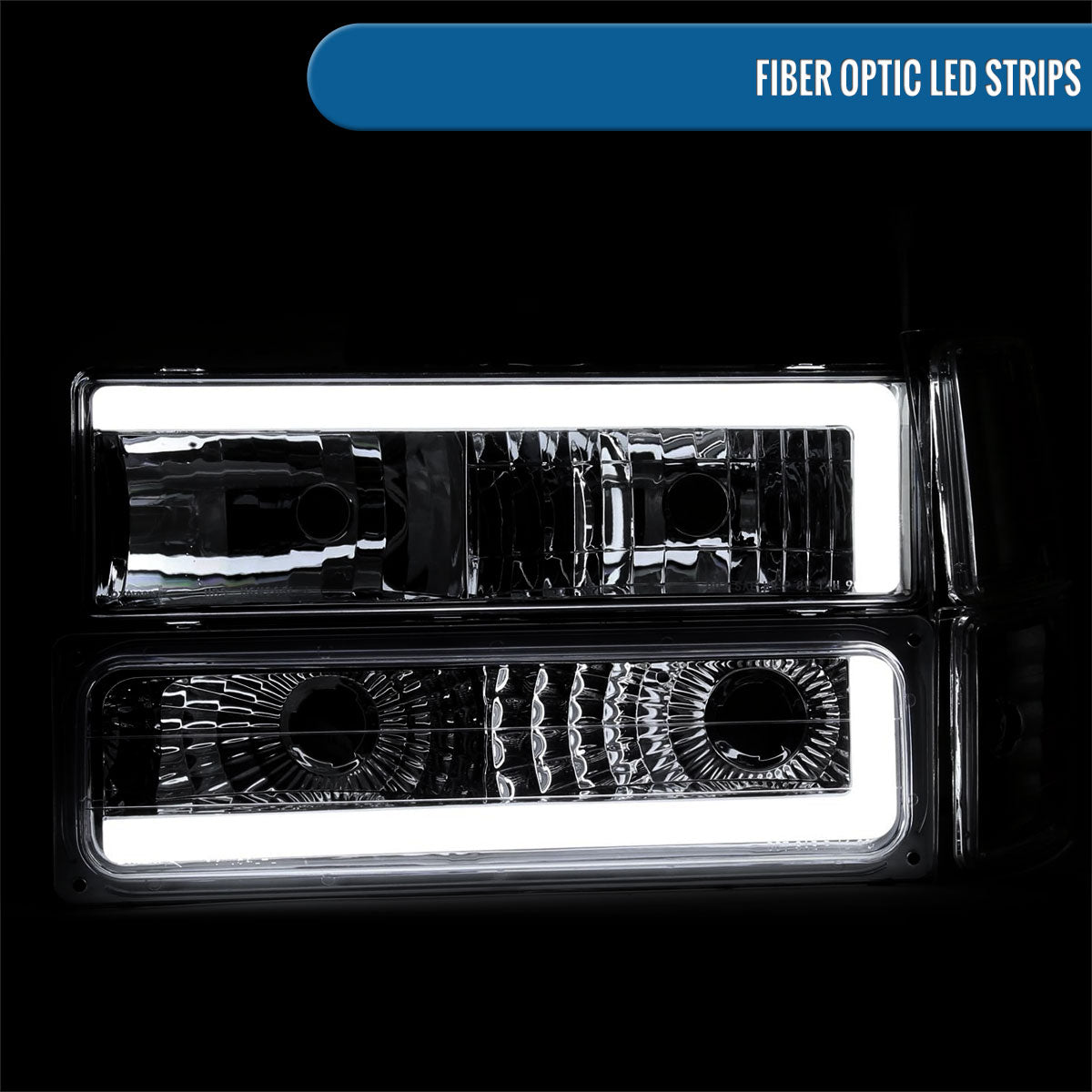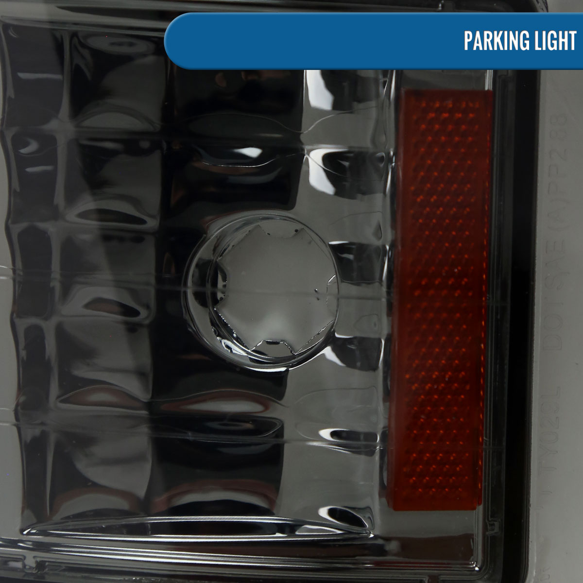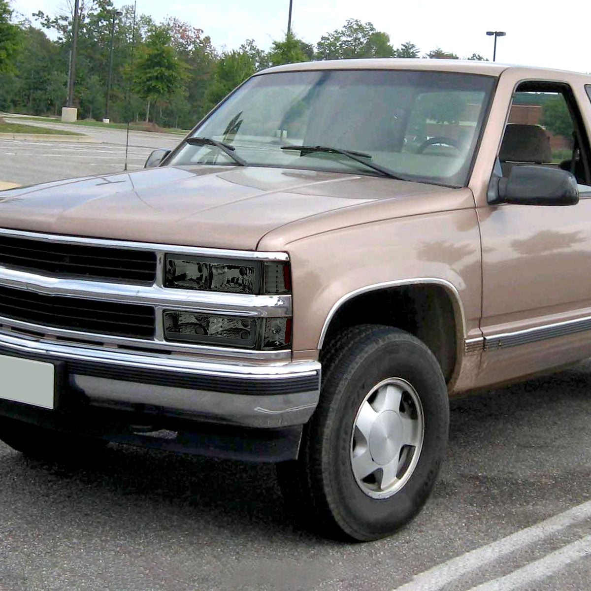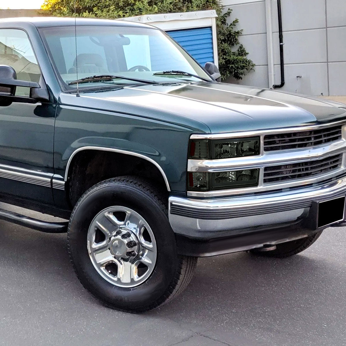 Ronnin - Fits 1994-1998 Chevy C10 C/K Silverado Suburban Tahoe LED Tube Headlights + Corner Bumper Parking Lights Assembly Pair | Smoke