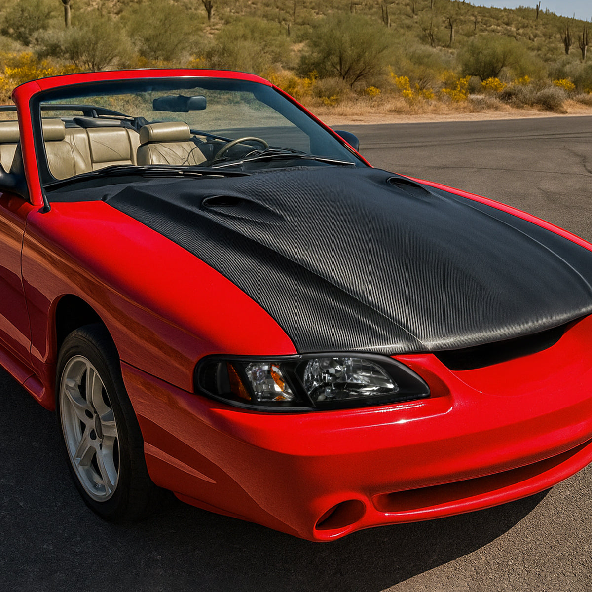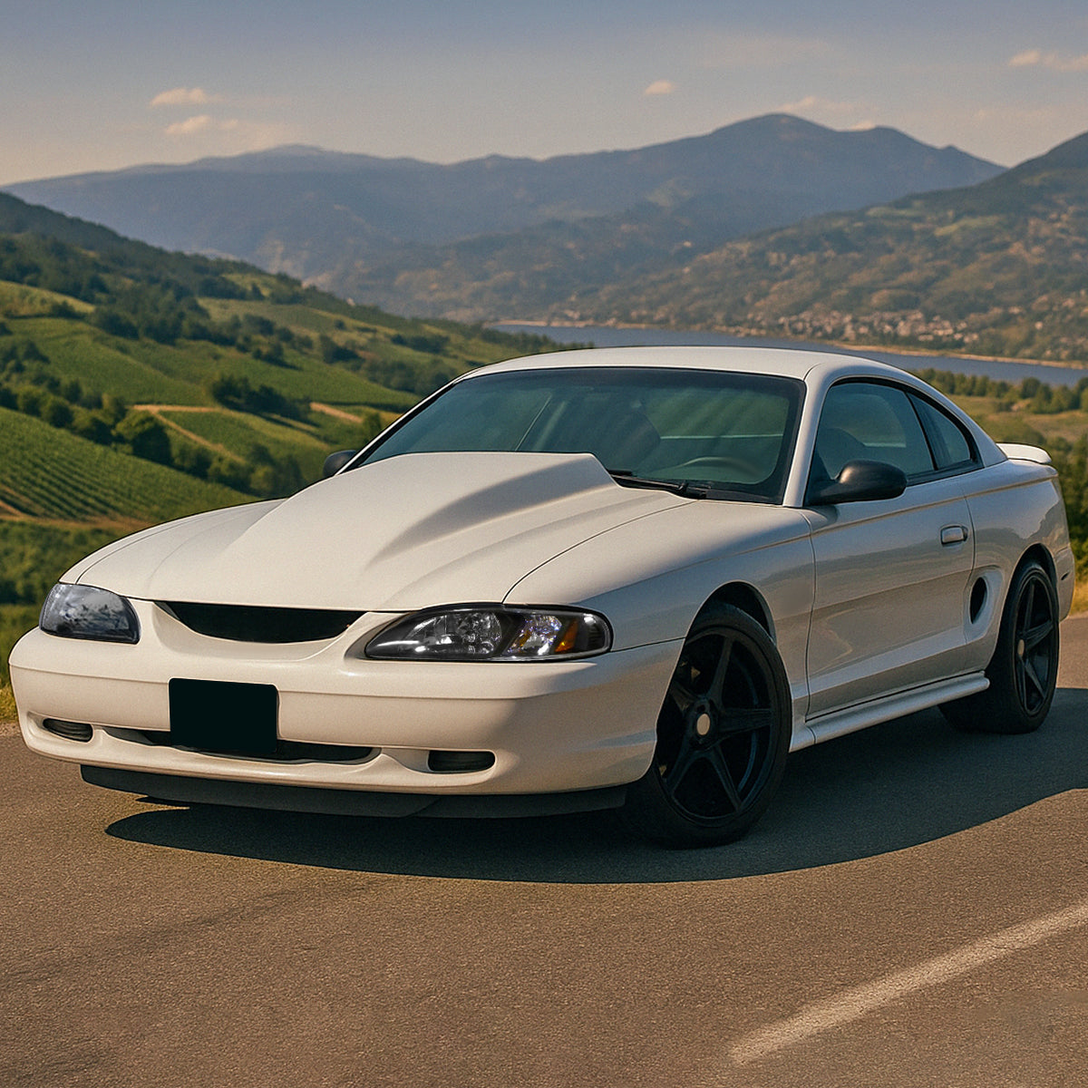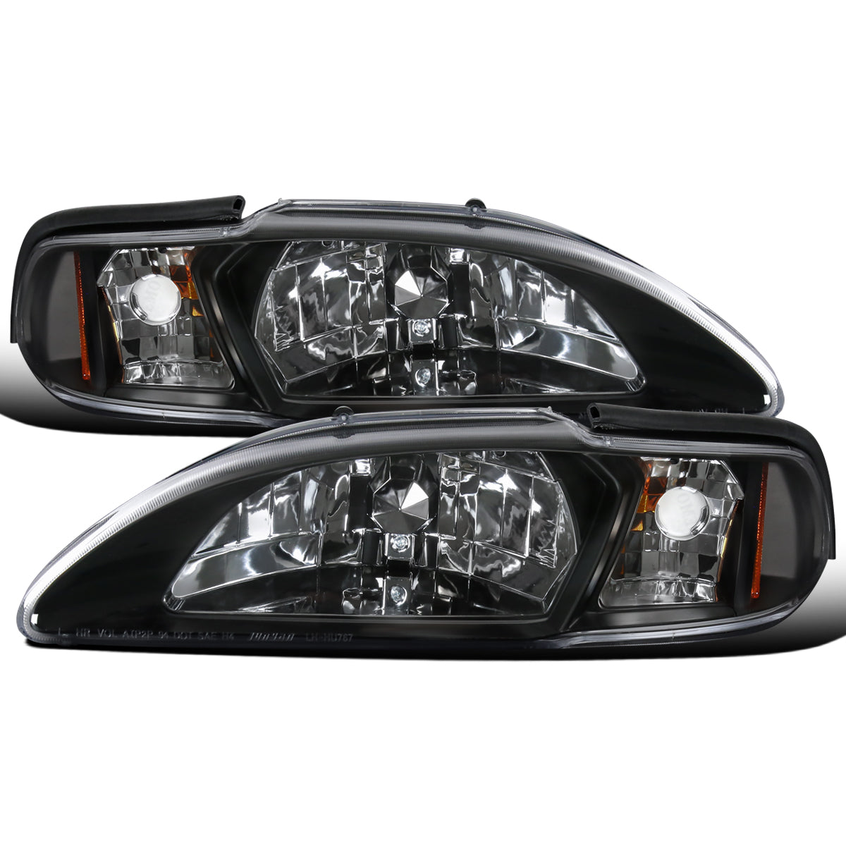 Ronnin - Fits 1994-1998 Ford Mustang All-in-One Replacement Headlights + Corner Lights Assembly Pair | Black