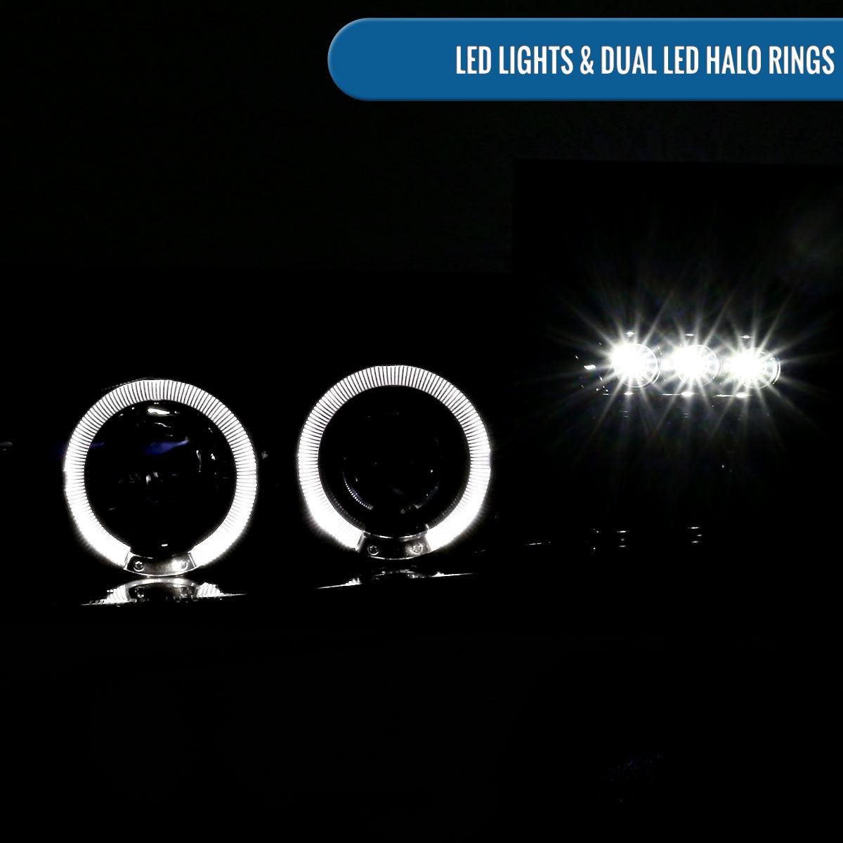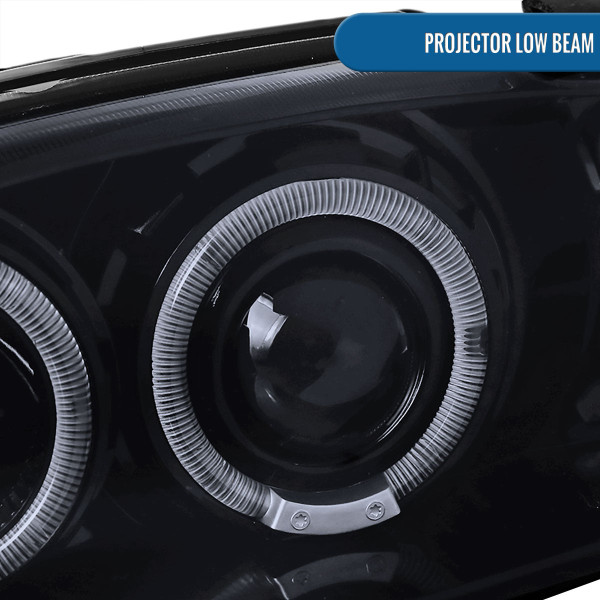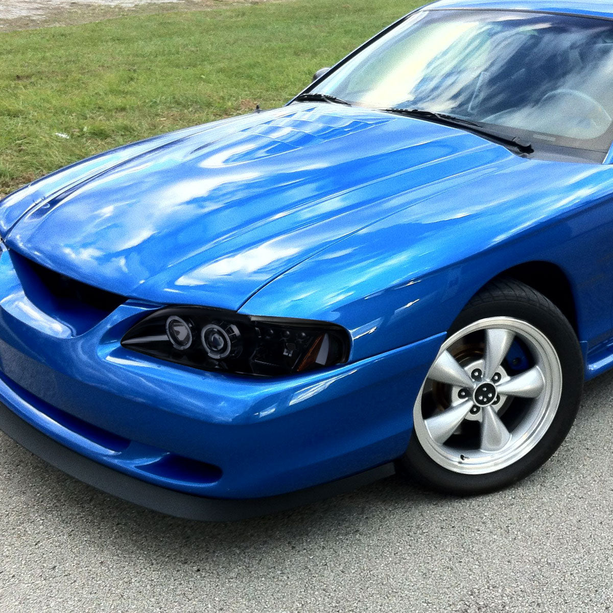 Ronnin - Fits 1994 -1998 Ford Mustang LED Angel Eyes Dual Halo Rims Projector Headlights Replacement Assembly Pair | Black Smoke