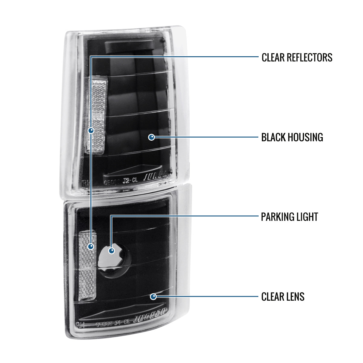 Ronnin - Fits 1994-1999 GMC C/K 1500 2500 3500 Suburban Sierra Yukon Factory Replacement Clear Reflector Corner Lights Assembly Pair | Black