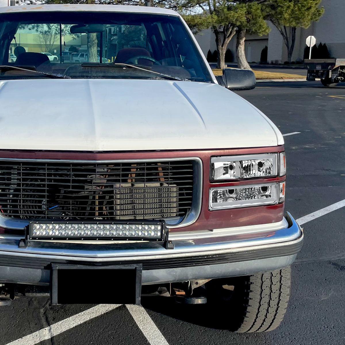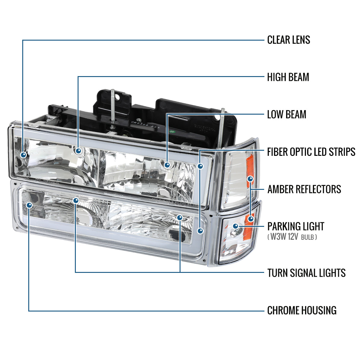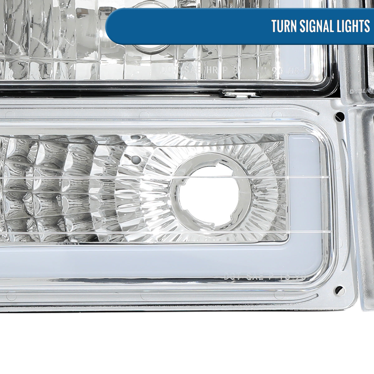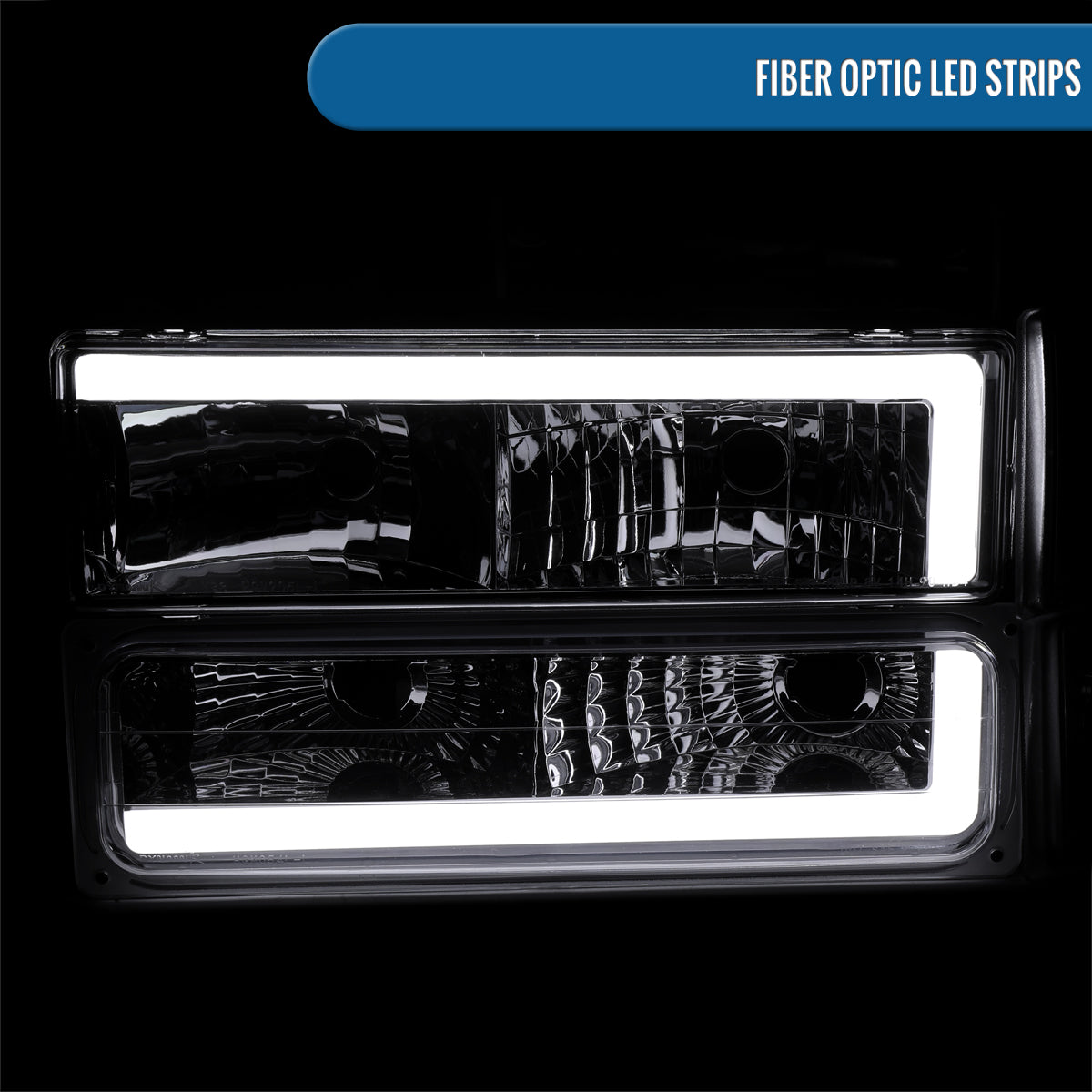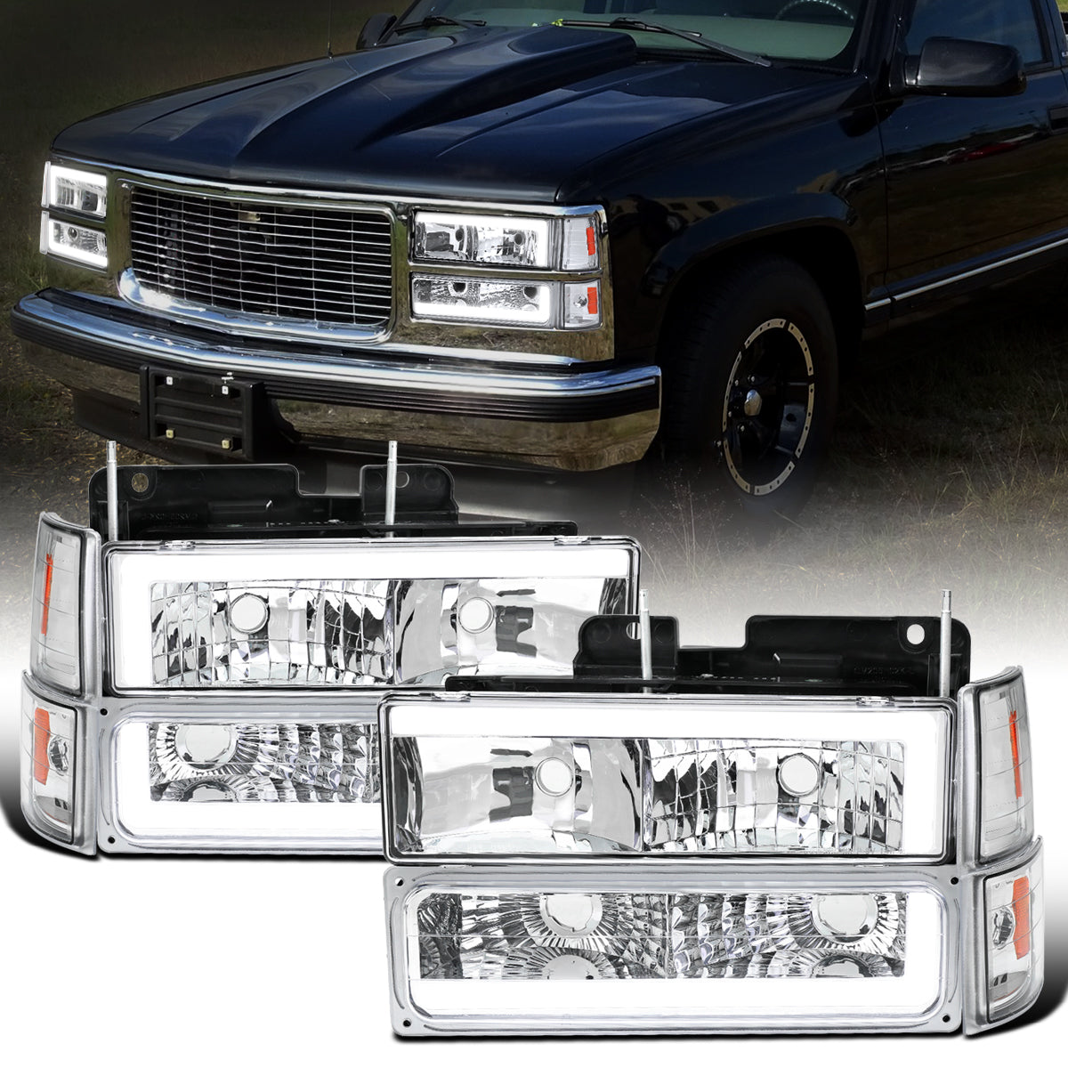 Ronnin - Fits 1994-1999 GMC C10 C/K Suburban Sierra Yukon LED Tube Headlights + Corner Bumper Parking Lights Assembly Pair | Chrome