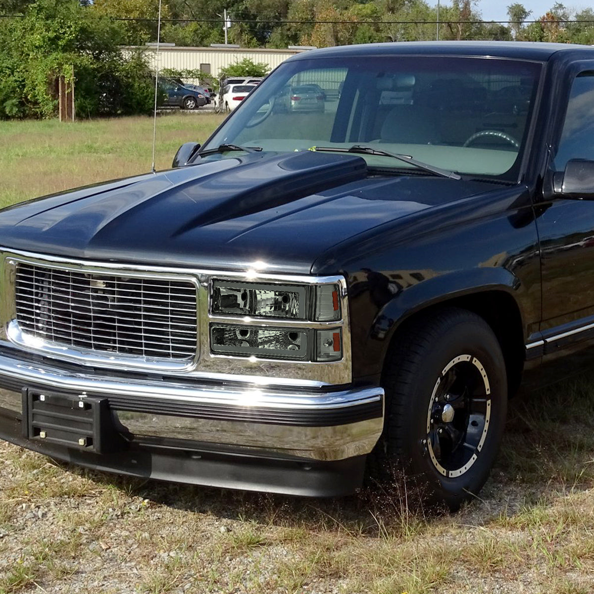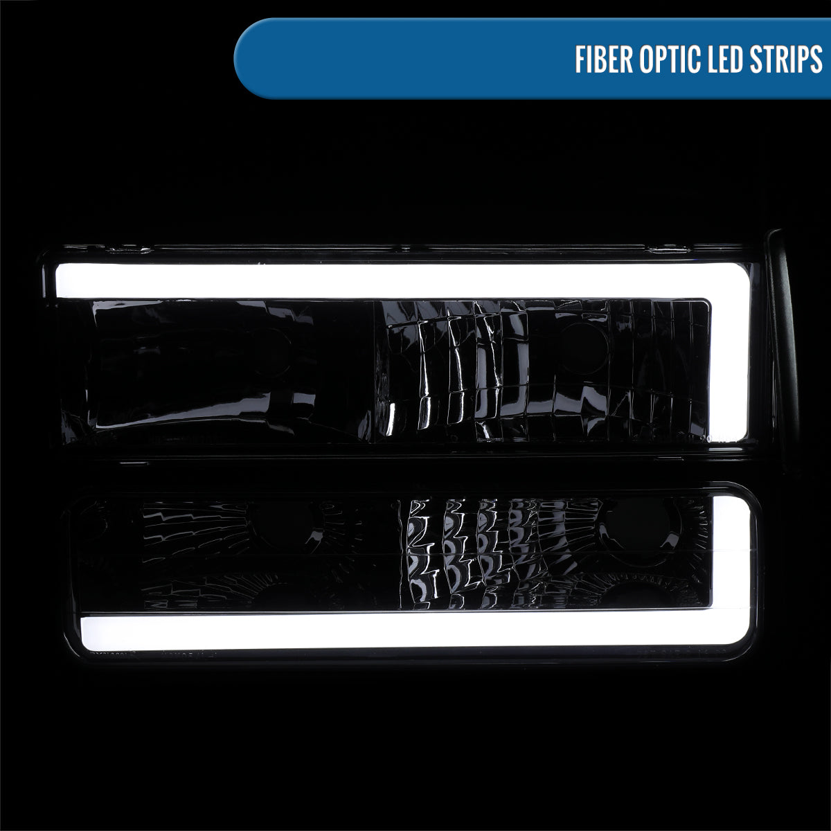 Ronnin - Fits 1994-1999 GMC C10 C/K Suburban Sierra Yukon LED Tube Headlights + Corner Bumper Parking Lights Assembly Pair | Smoke