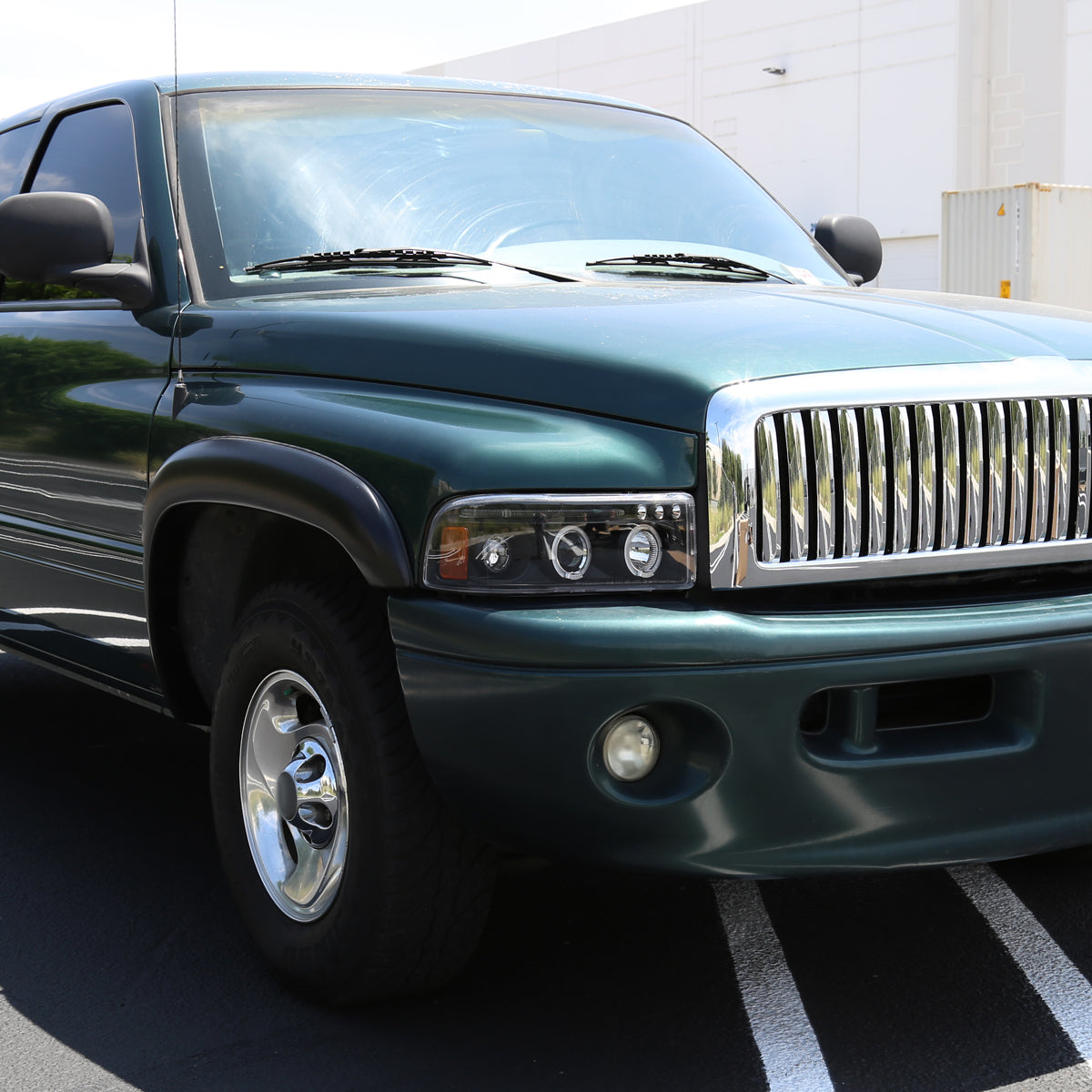 Ronnin - Fits 1994-2001 Dodge Ram 1500 2500 3500 Upgraded LED Dual Rims Projector Headlights Assembly Pair | Black