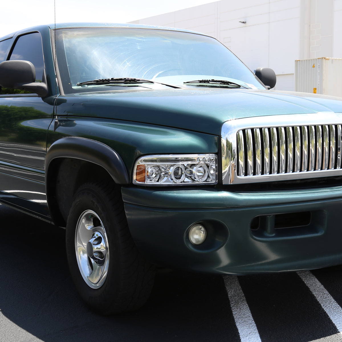 Ronnin - Fits 1994-2001 Dodge Ram 1500 2500 3500 Upgraded LED Dual Rims Projector Headlights Assembly Pair | Chrome