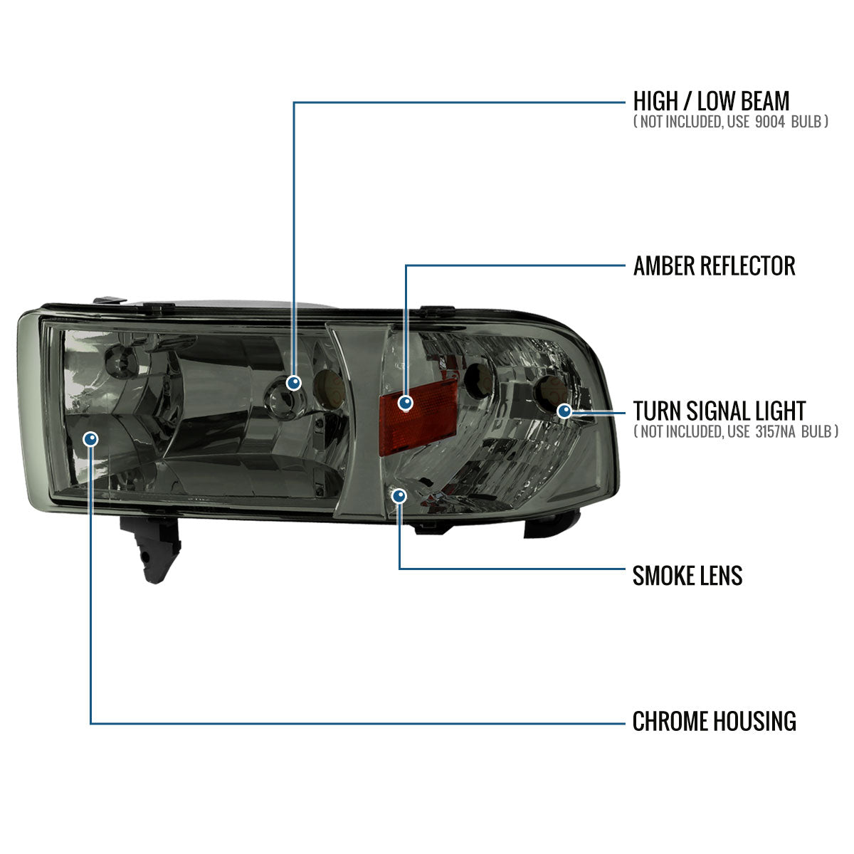 Ronnin - Fits 1994-2002 Dodge Ram 1500 2500 3500 All-in One Factory Replacement Headlights + Corner Signal Lamps Assembly Pair | Smoke