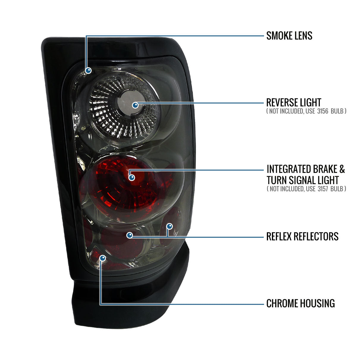 Ronnin - Fits 1994-2002 Dodge Ram 1500 2500 3500 Upgrade Factory Style Replacement Tail Lights Assembly Pair | Smoke