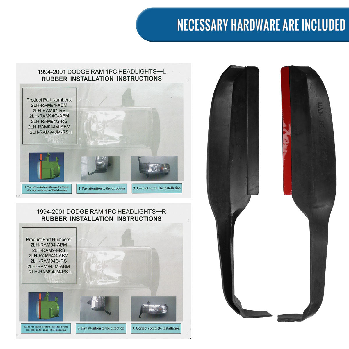 Ronnin - Fits 1994-2002 Dodge Ram 1500 2500 3500 Upgraded Replacement LED Tube Headlights Assembly Pair | Smoke