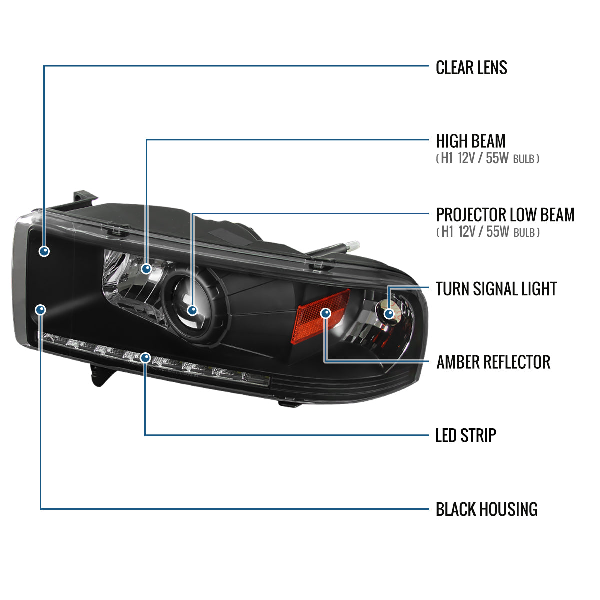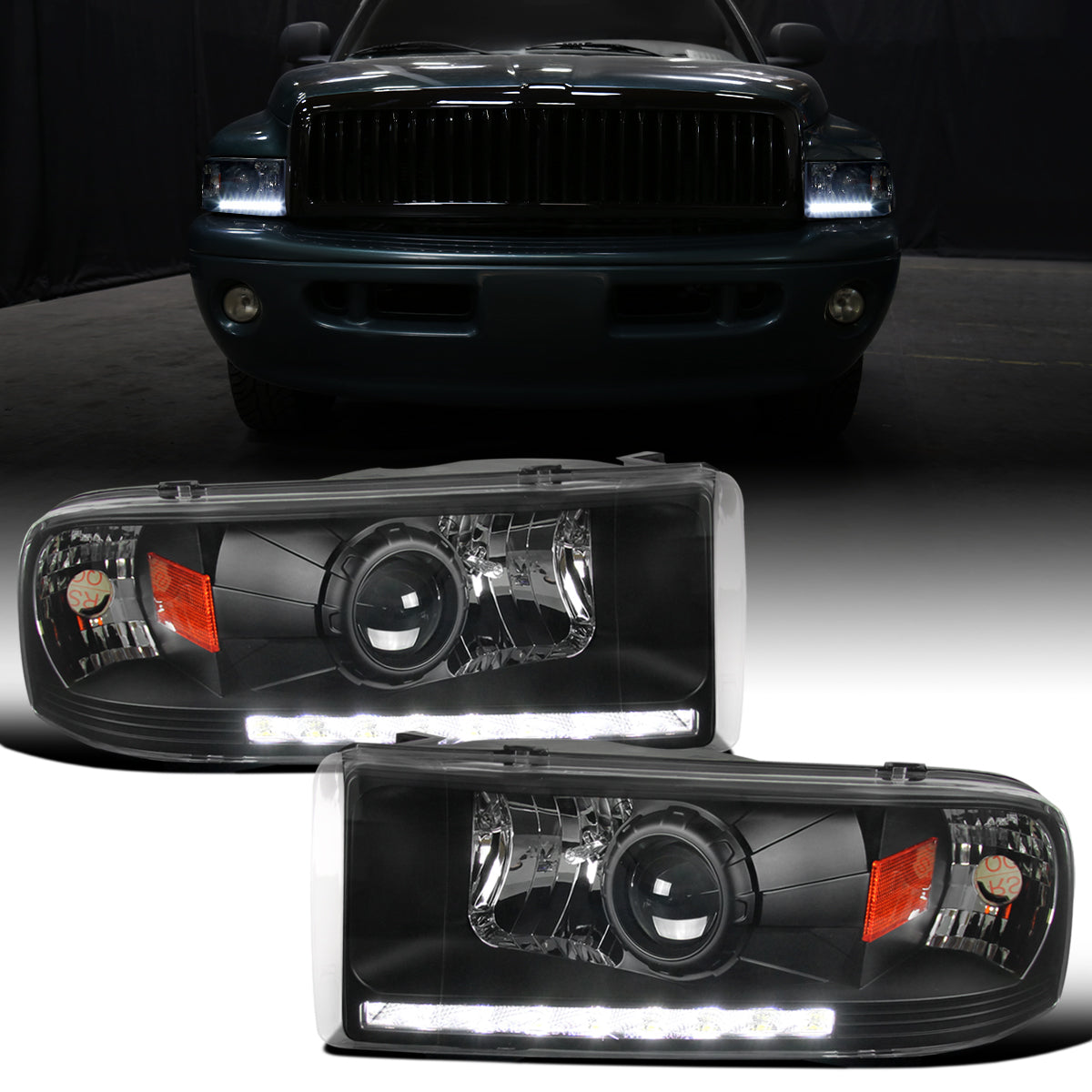 Ronnin - Fits 1994-2002 Ram 1500 2500 3500 Projector Headlights LED Running Lights Assembly Pair | Black