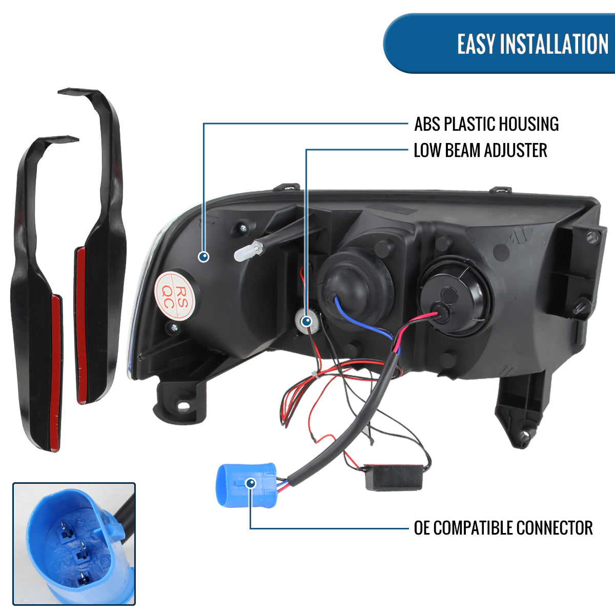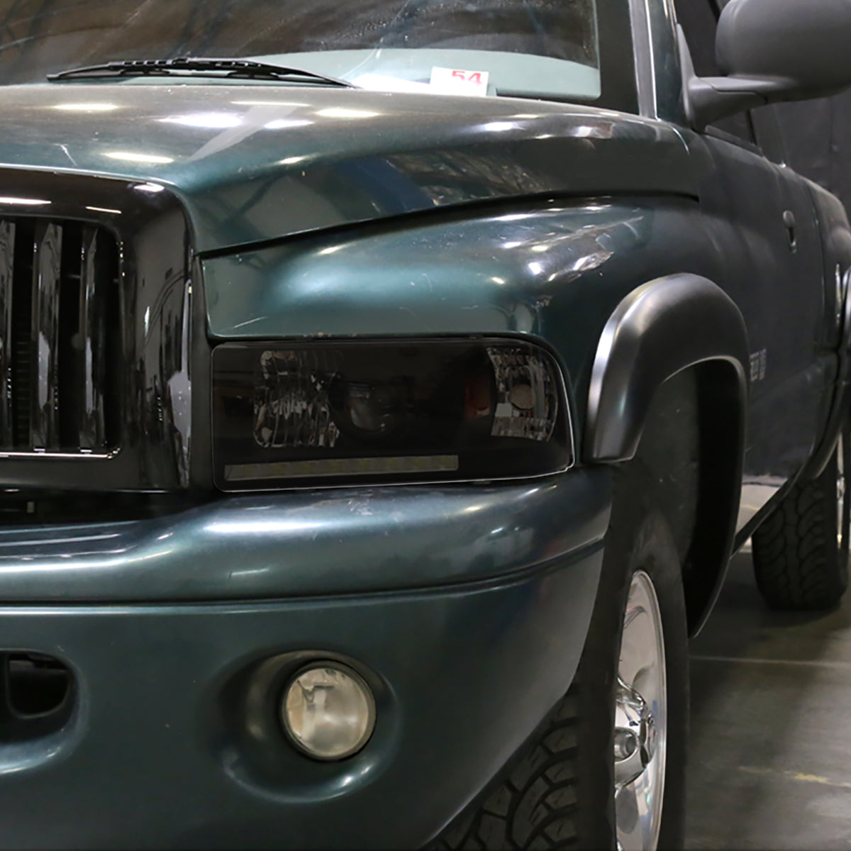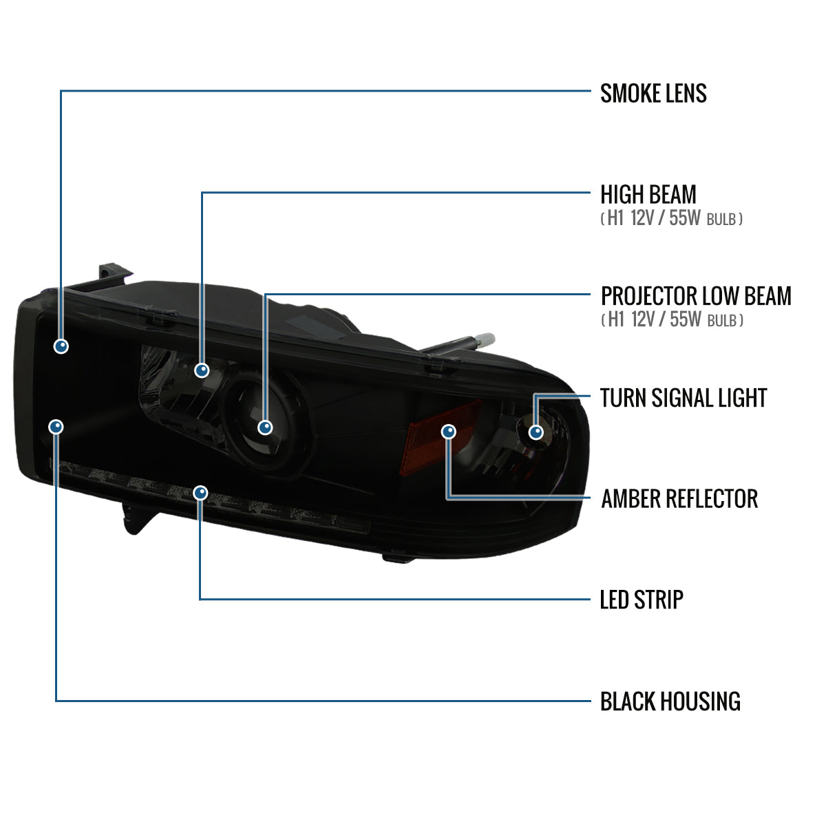 Ronnin - Fits 1994-2002 Ram 1500 2500 3500 Projector Headlights LED Running Lights Assembly Pair | Black Smoke