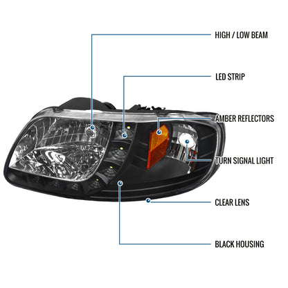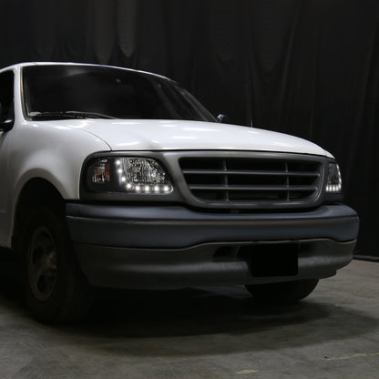Ronnin - Fits 1997-2003 Ford F150 Expedition 2004 F150 Heritage All-in-One Factory Replacement LED Running Lights Headlights Assembly Pair | Black