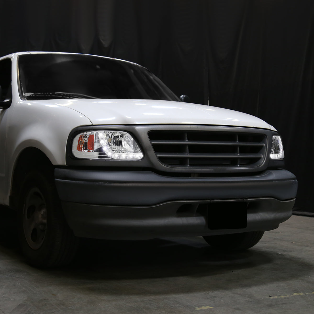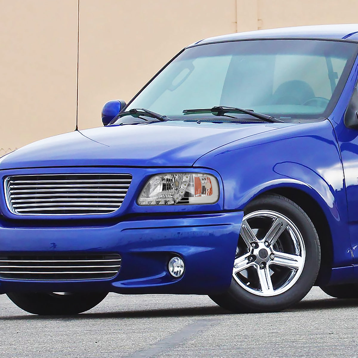 Ronnin - Fits 1997-2003 Ford F150 Expedition 2004 F150 Heritage All-in-One Factory Replacement LED Running Lights Headlights Assembly Pair | Chrome