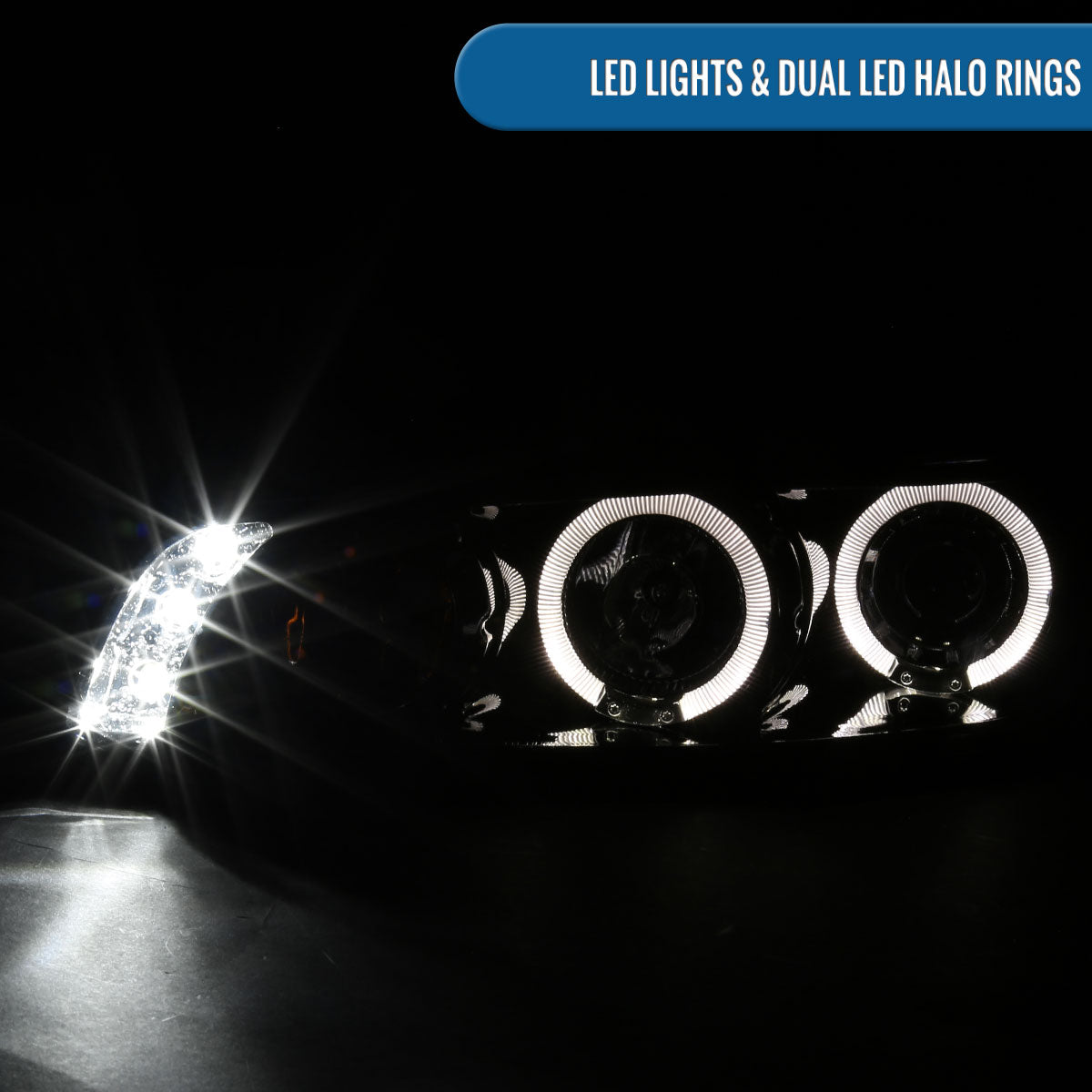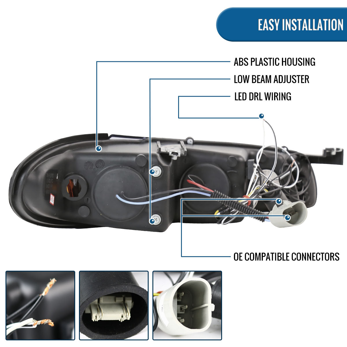 Ronnin - Fits 1997-2003 Pontiac Grand Prix All-in-One Replacement LED Dual Rims Projector Headlights + Corner Lights Assembly Pair | Black Smoke
