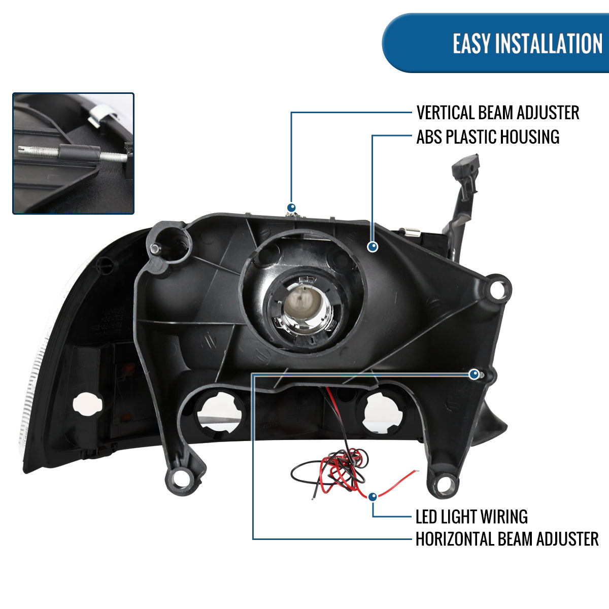 Ronnin - Fits 1997-2004 Dodge Dakota 1998-2003 Durango Upgraded Replacement LED Running Lights Headlights Assembly Pair | Black