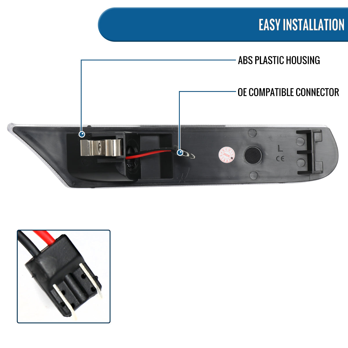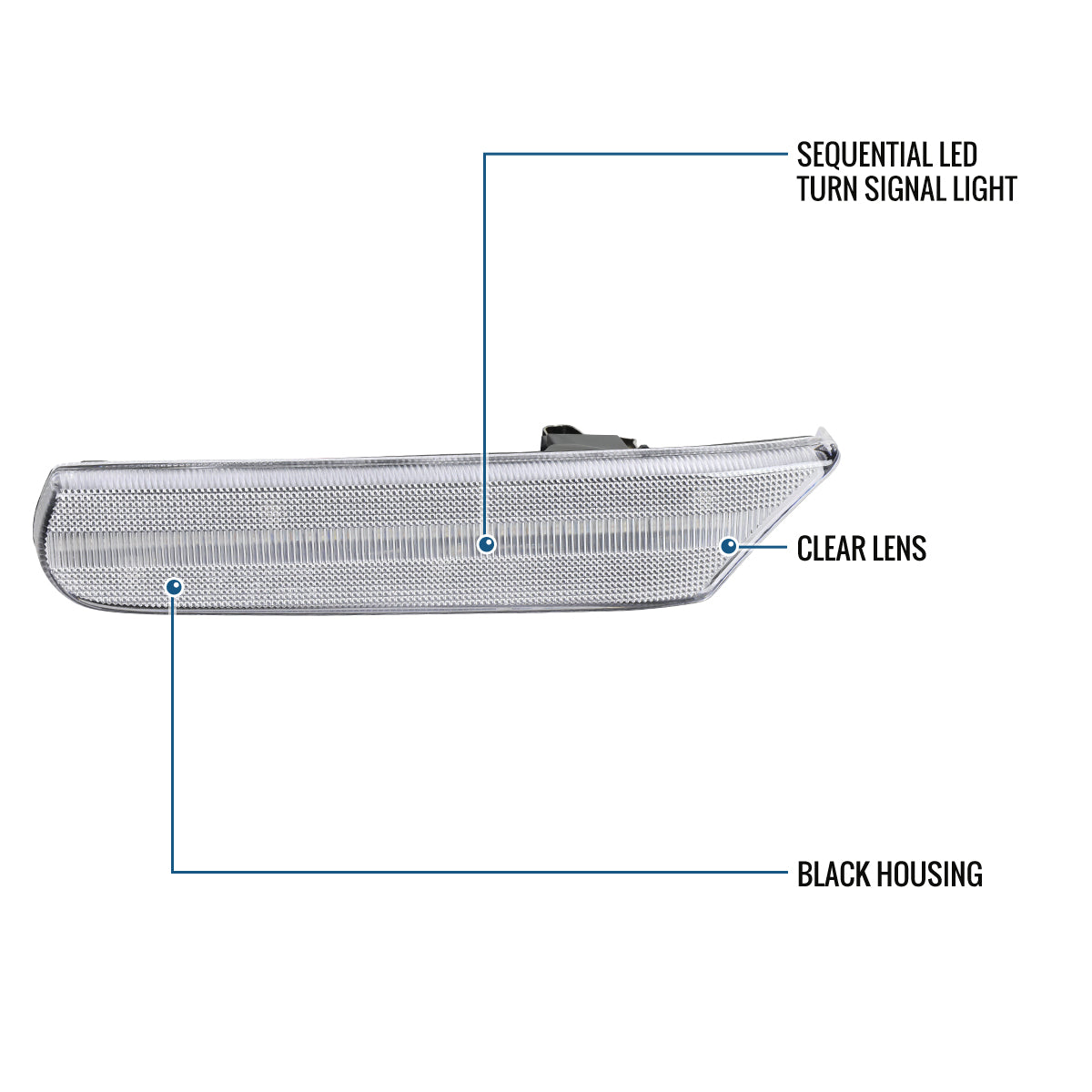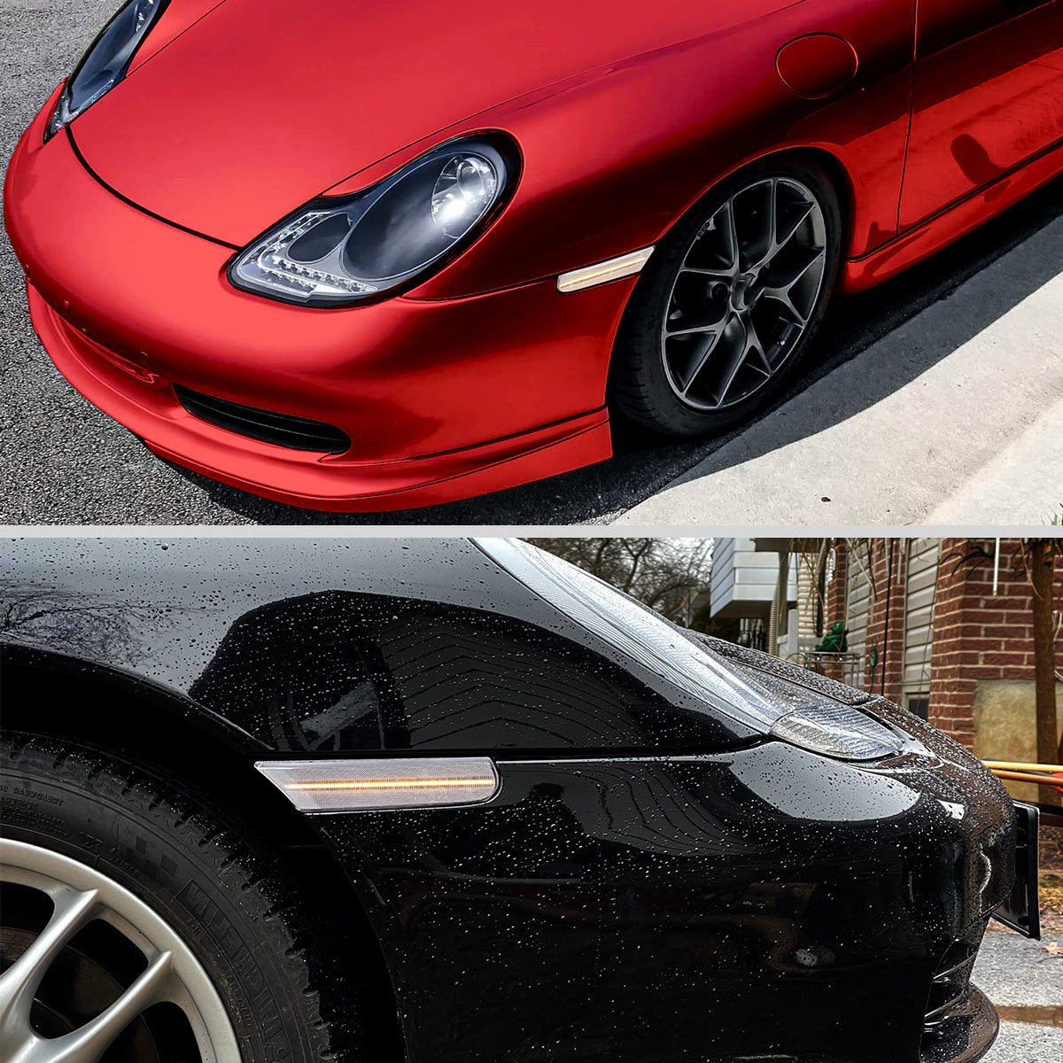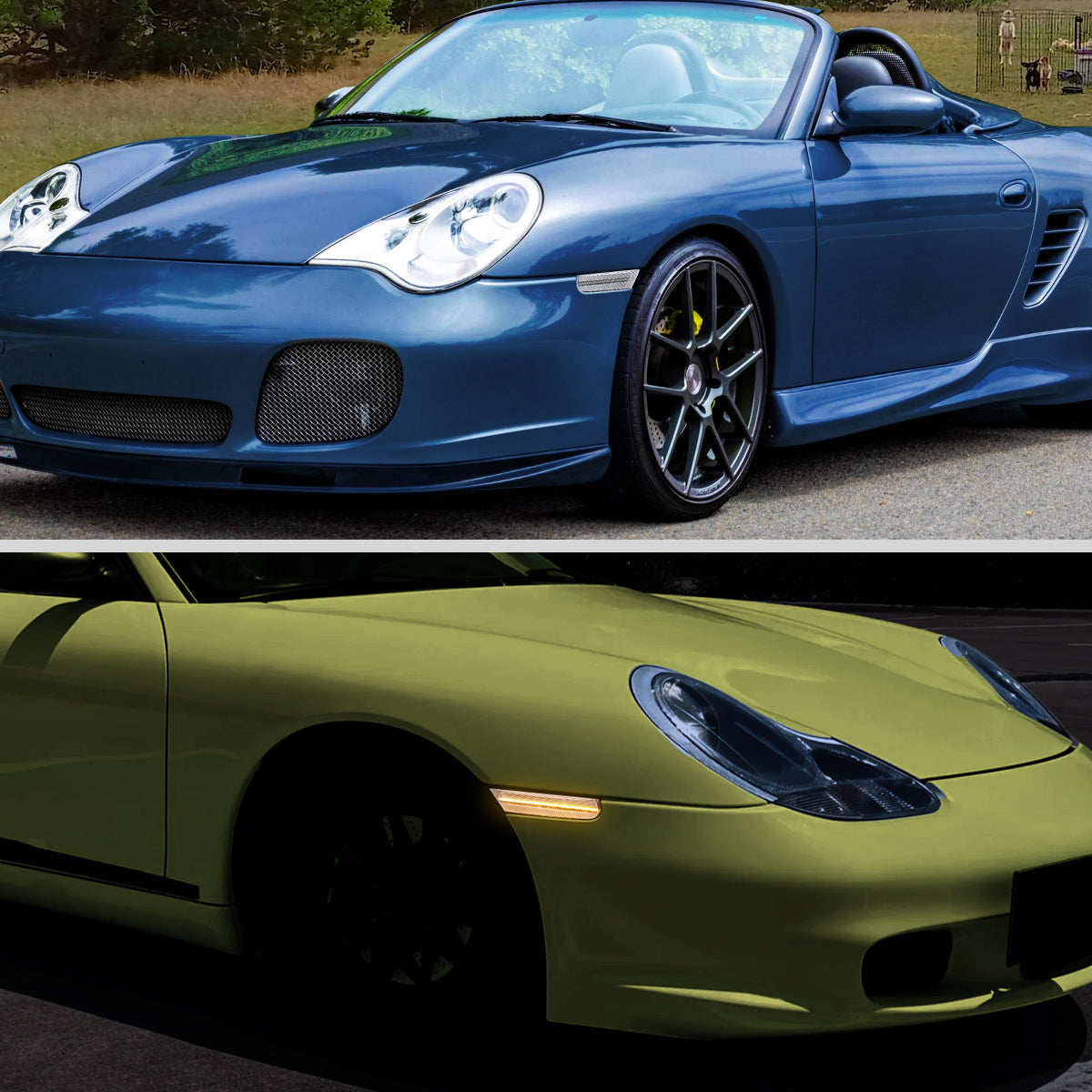 Ronnin - Fits 1997-2004 Porsche Boxster 986 1997-2005 Porsche 911 996 Coupe Convertible Targa LED Sequential Turn Signals Side Marker Bumper Lights Assembly Pair | Clear
