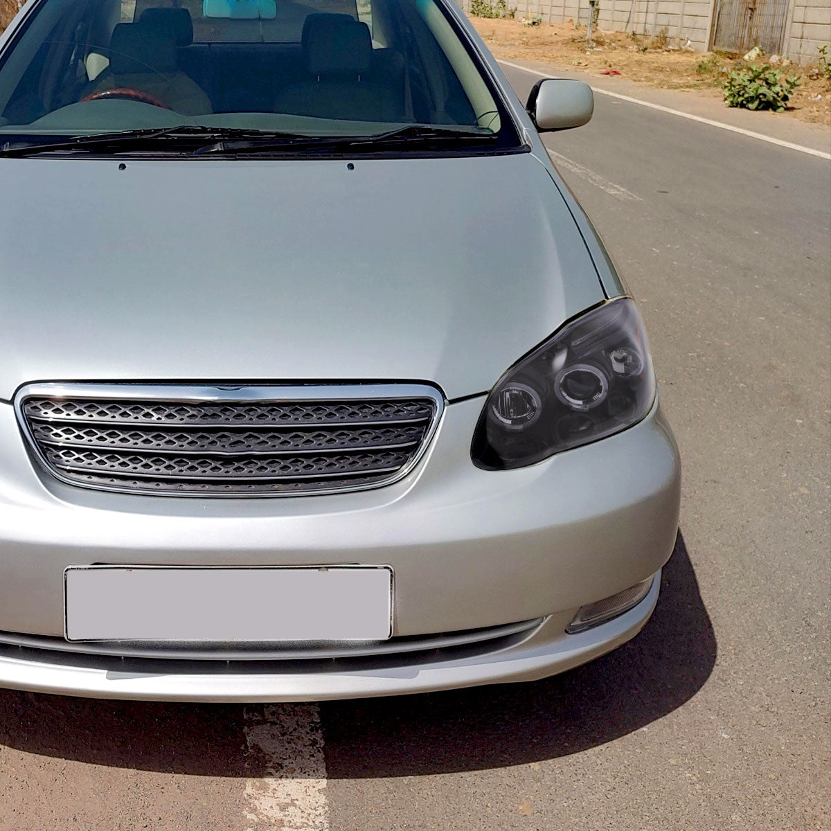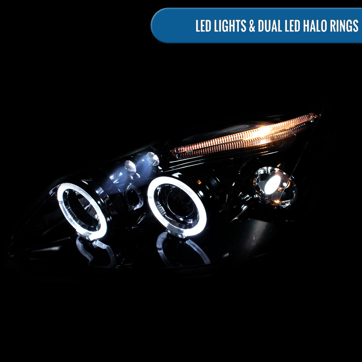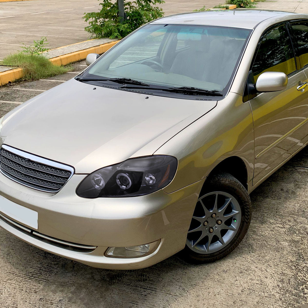 Ronnin - Fits 2003-2008 Toyota Corolla Upgraded Replacement LED Dual Rims Projector Headlights Assembly Pair | Black Smoke