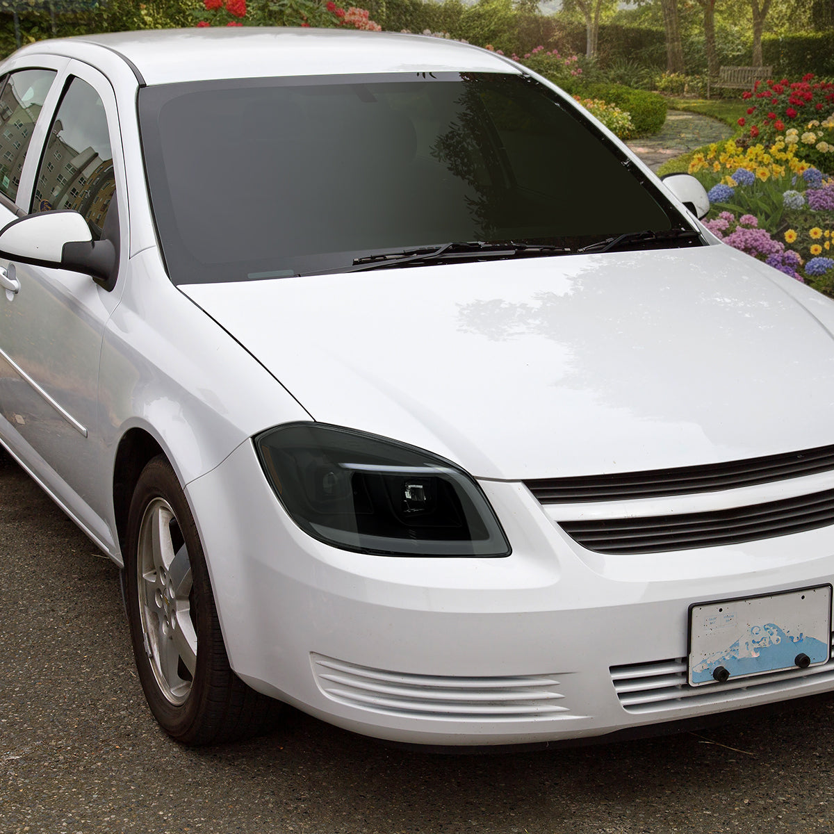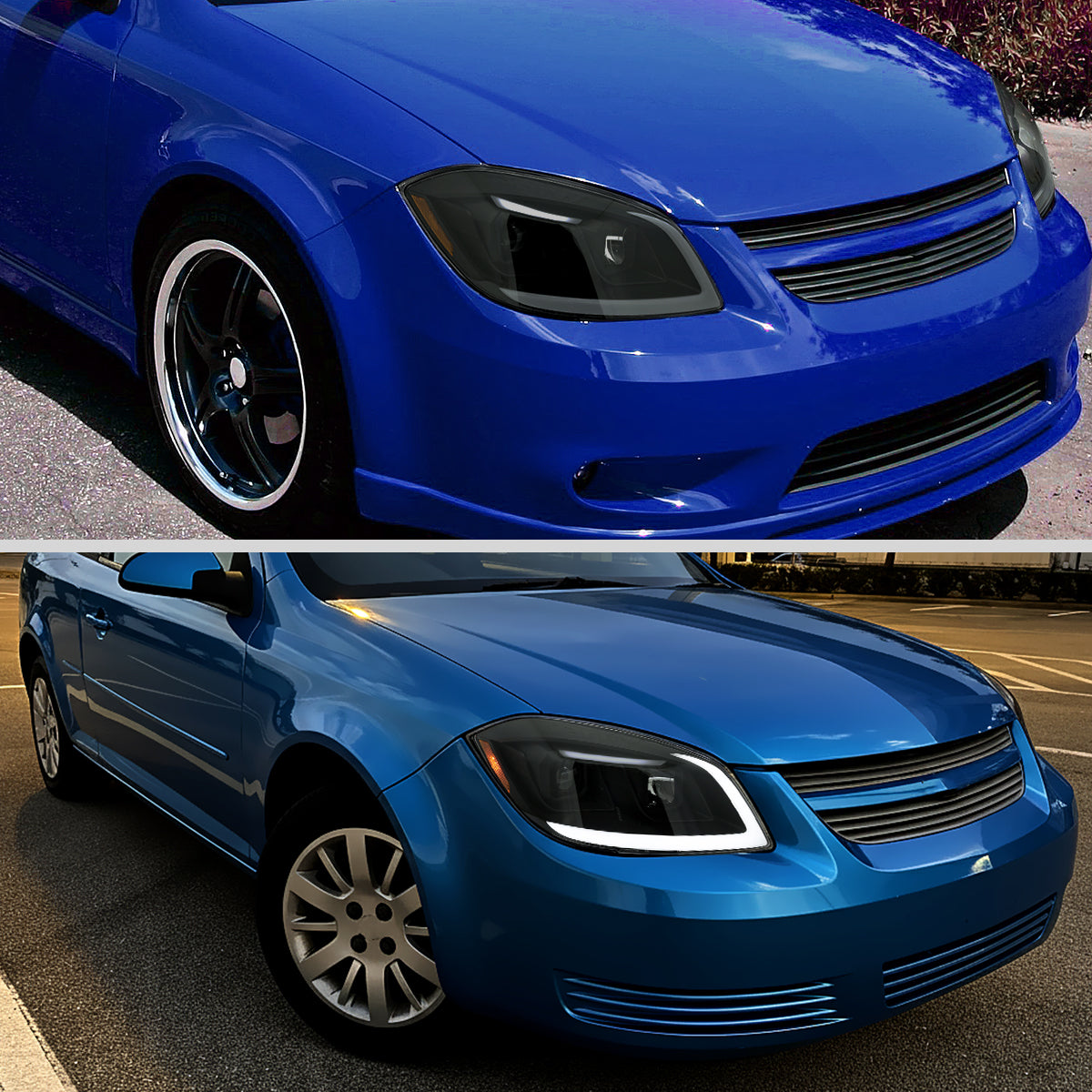 Ronnin - Fits 2005-2010 Chevy Cobalt Pontiac G5 Pursuit Upgraded Replacement LED Turn Signals Switchback Parking Square Shrouds Projector Headlights Assembly Pair | Black Smoke