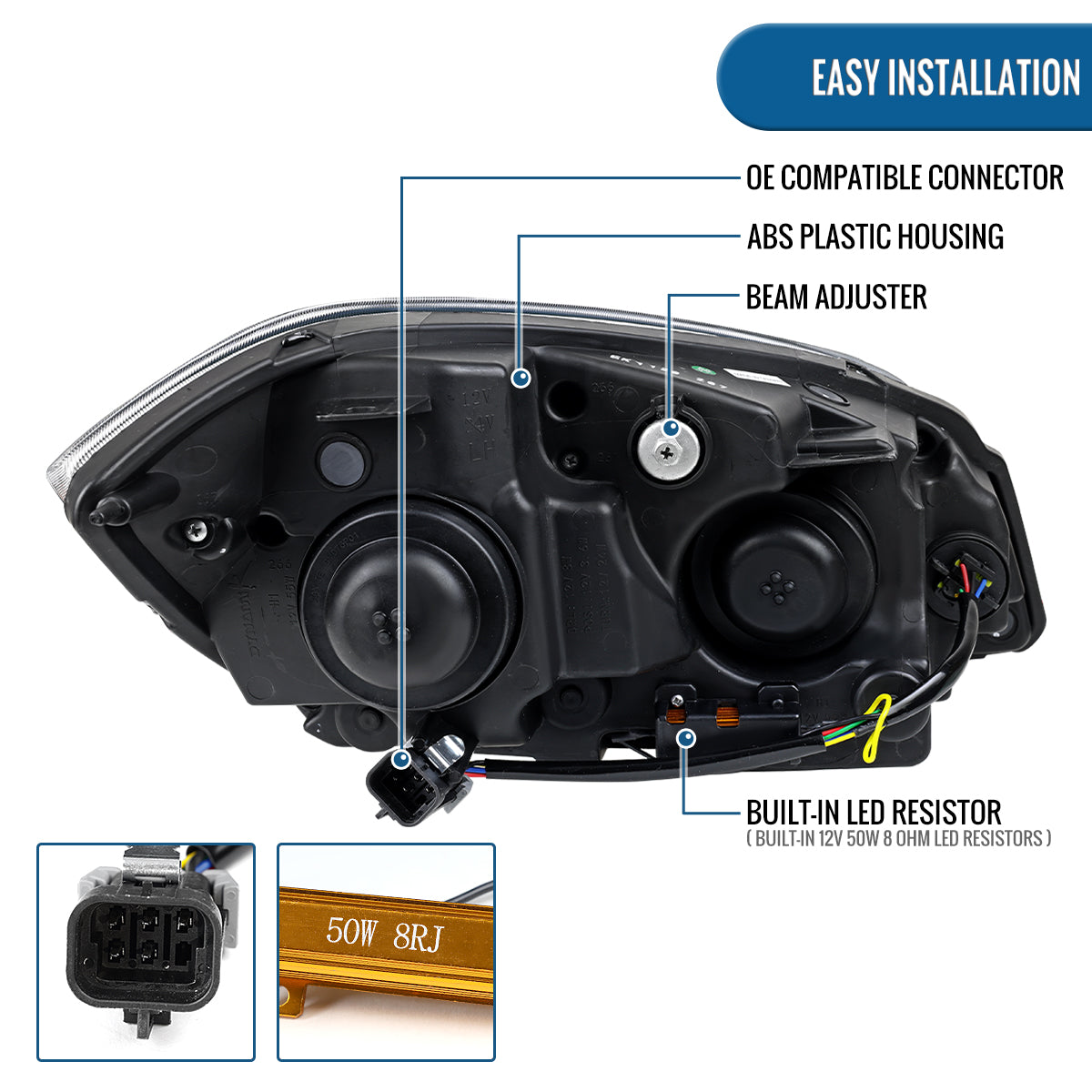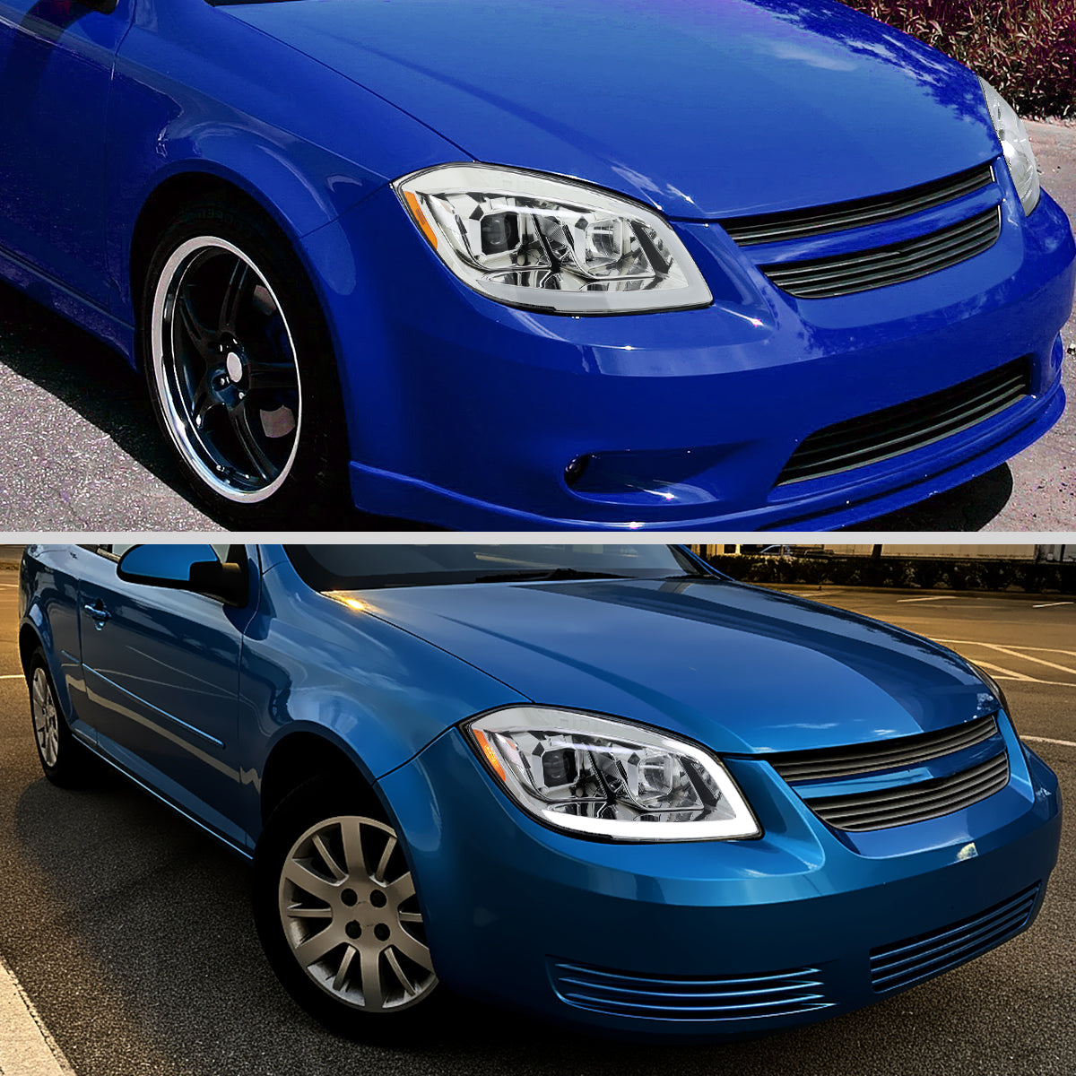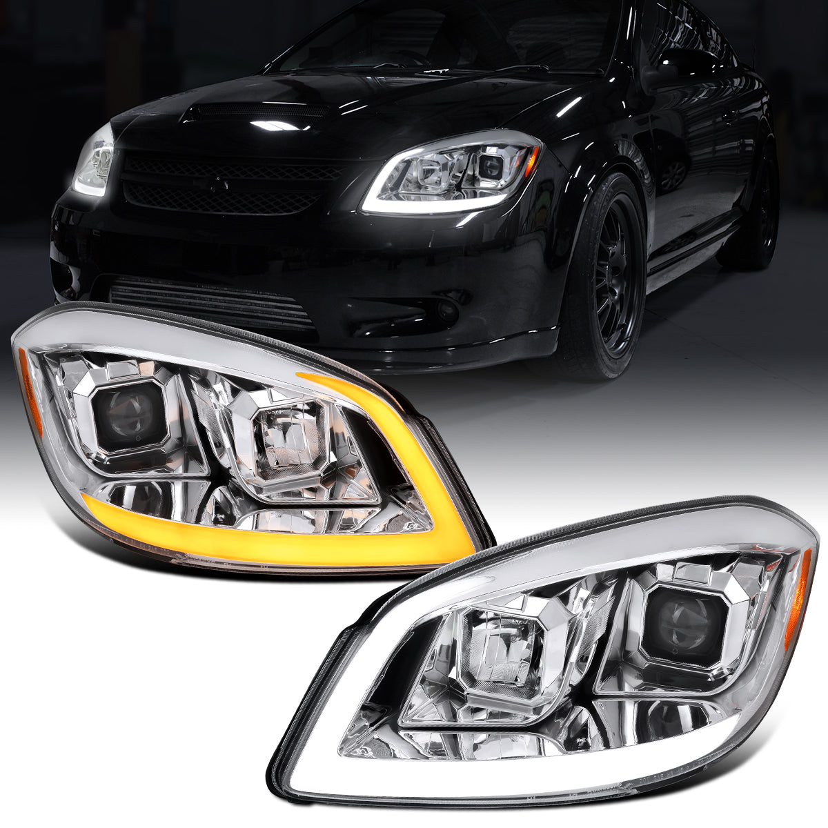 Ronnin - Fits 2005-2010 Chevy Cobalt Pontiac G5 Pursuit Upgraded Replacement LED Turn Signals Switchback Parking Square Shrouds Projector Headlights Assembly Pair | Chrome