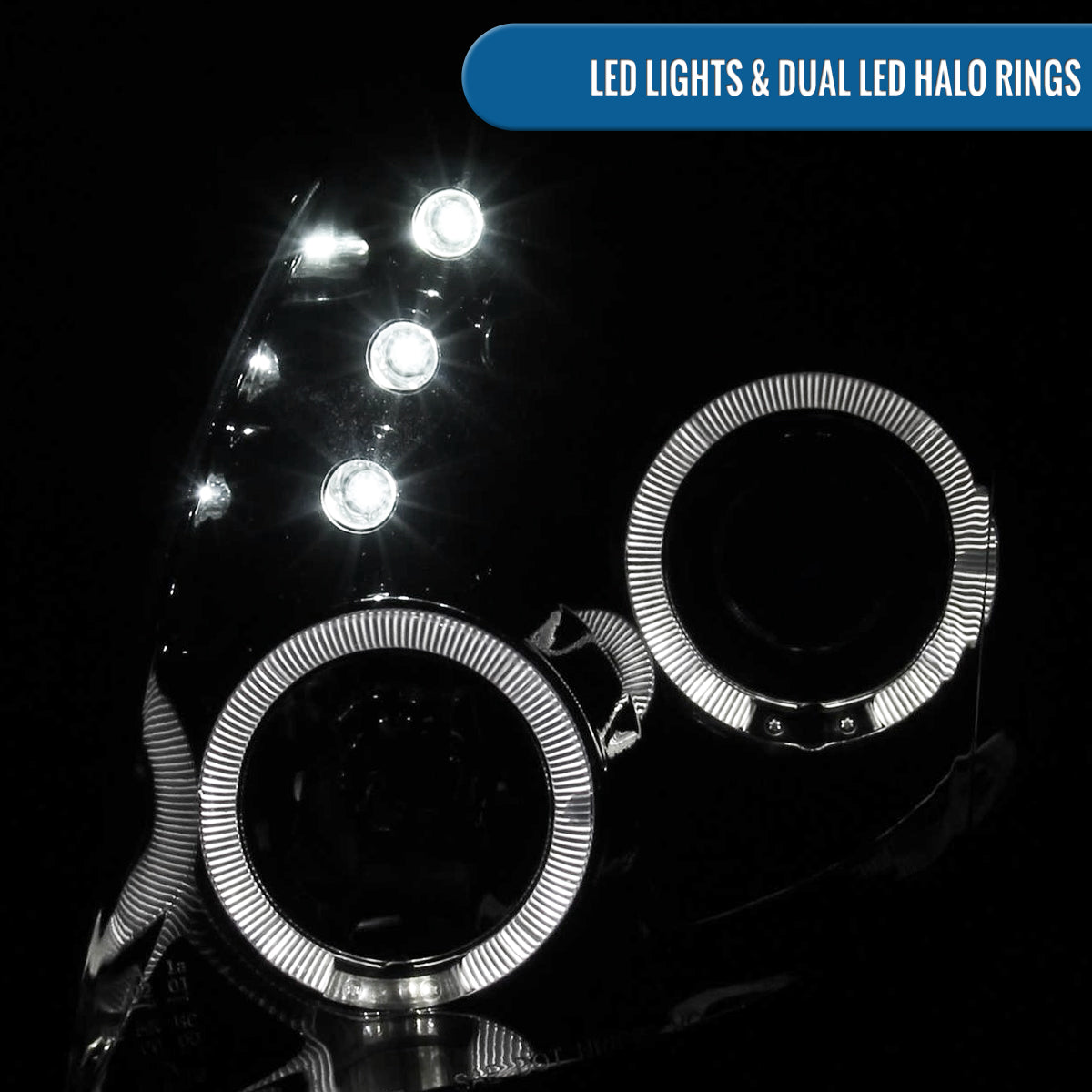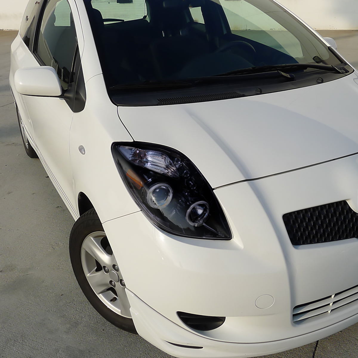 Ronnin - Fits 2006-2008 Toyota Yaris Hatchback LED Dual Halo Rims Running Lights Projector Headlights Assembly Pair | Black Smoke