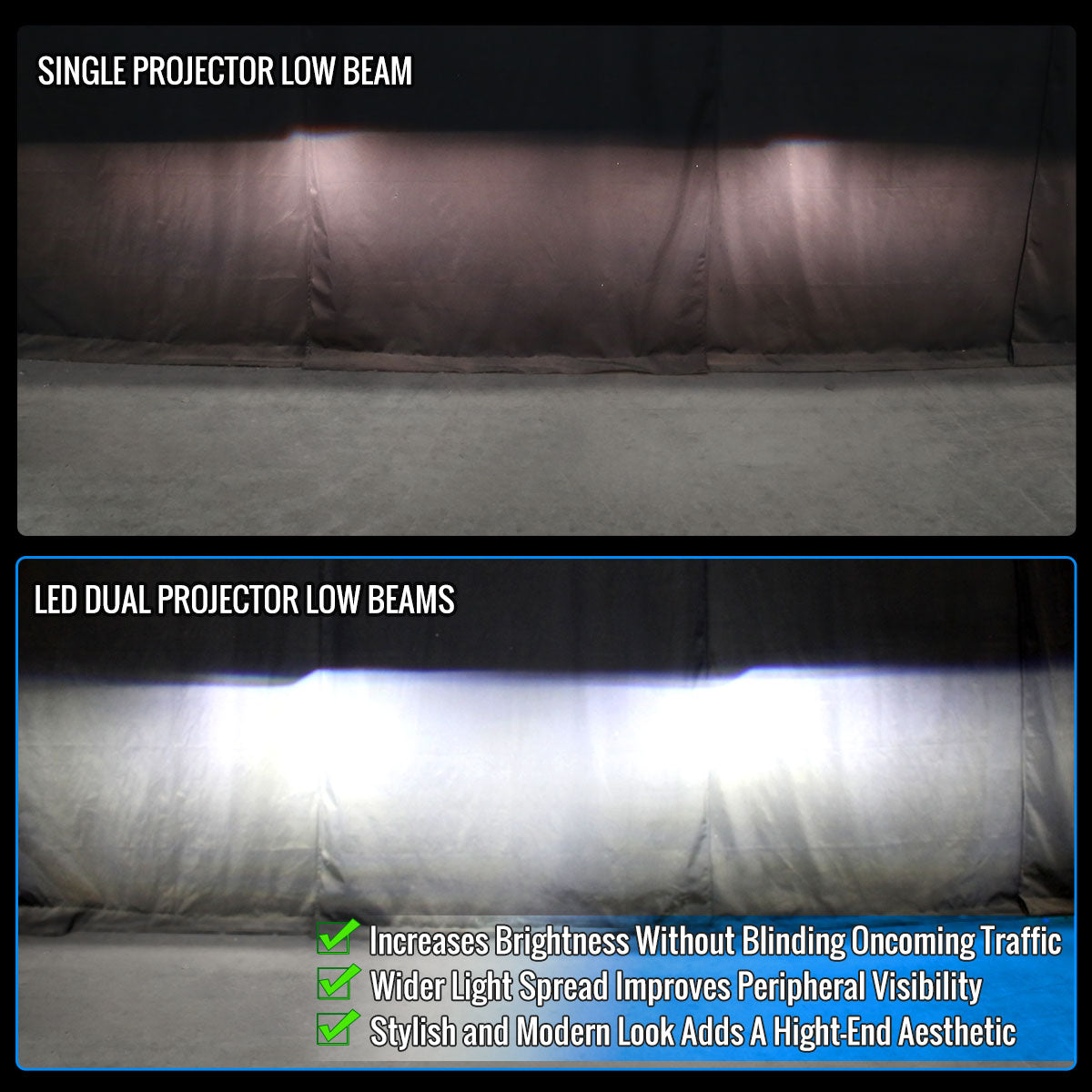 Ronnin - Fits 2009-2018 Ram 1500 2500 3500 2019-2024 Ram 1500 Classic Bright LED Beam Quad Projector Headlights Replacement Assembly Pair | Black