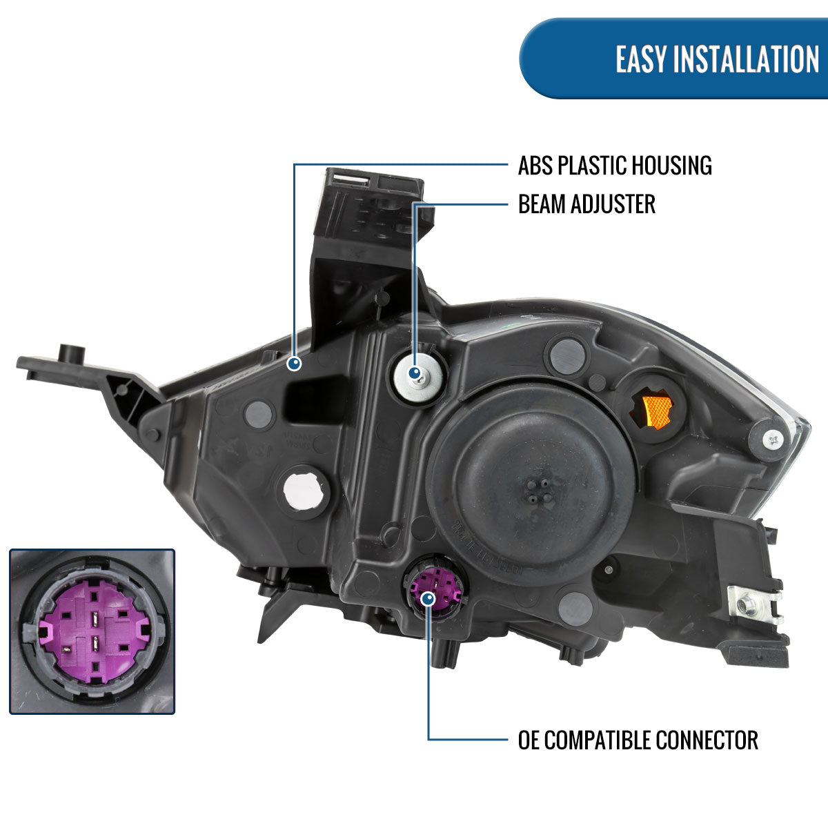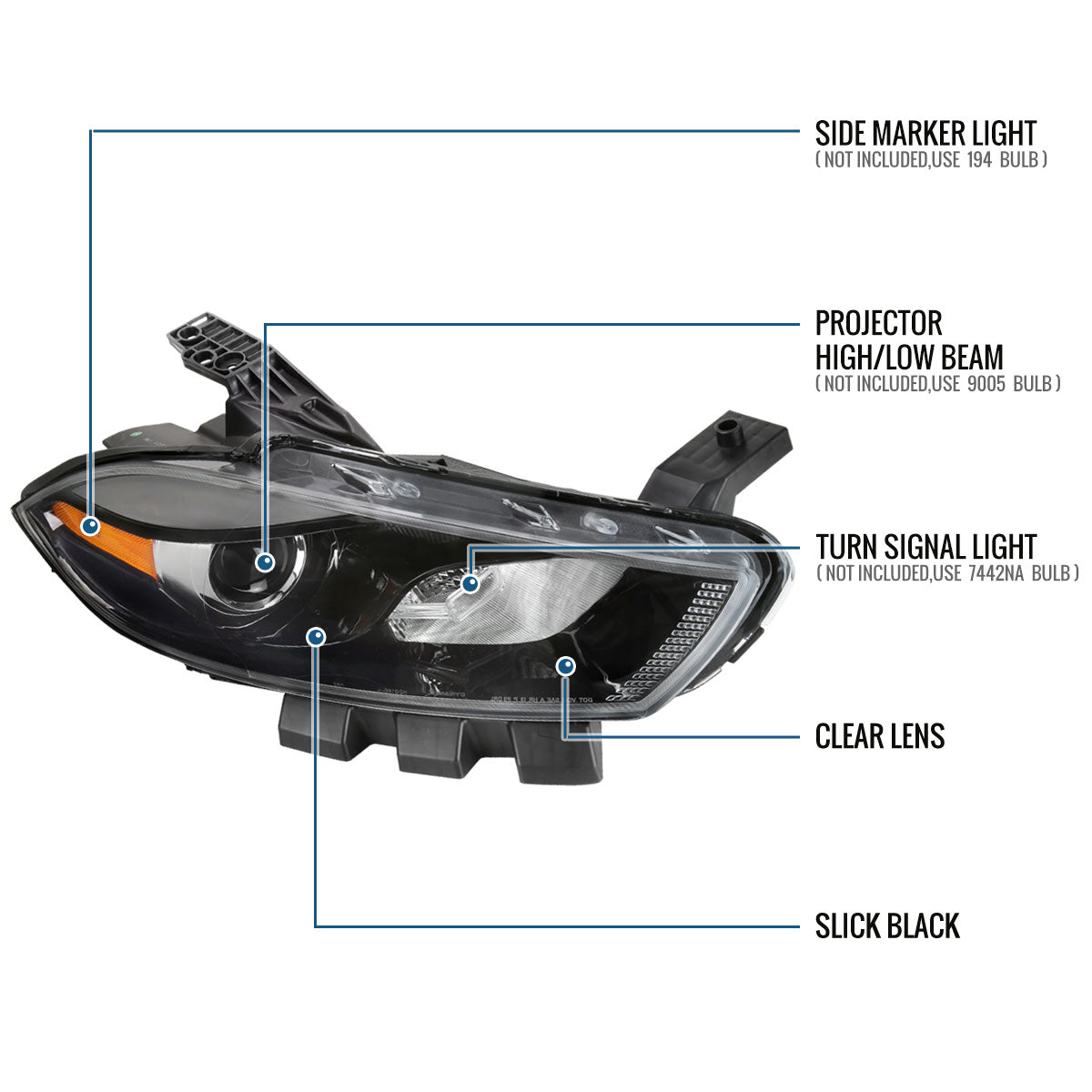 Ronnin - Fits 2013-2016 Dodge Dart Halogen Factory Replacement Projector Headlights Assembly Pair | Black | Passenger Side