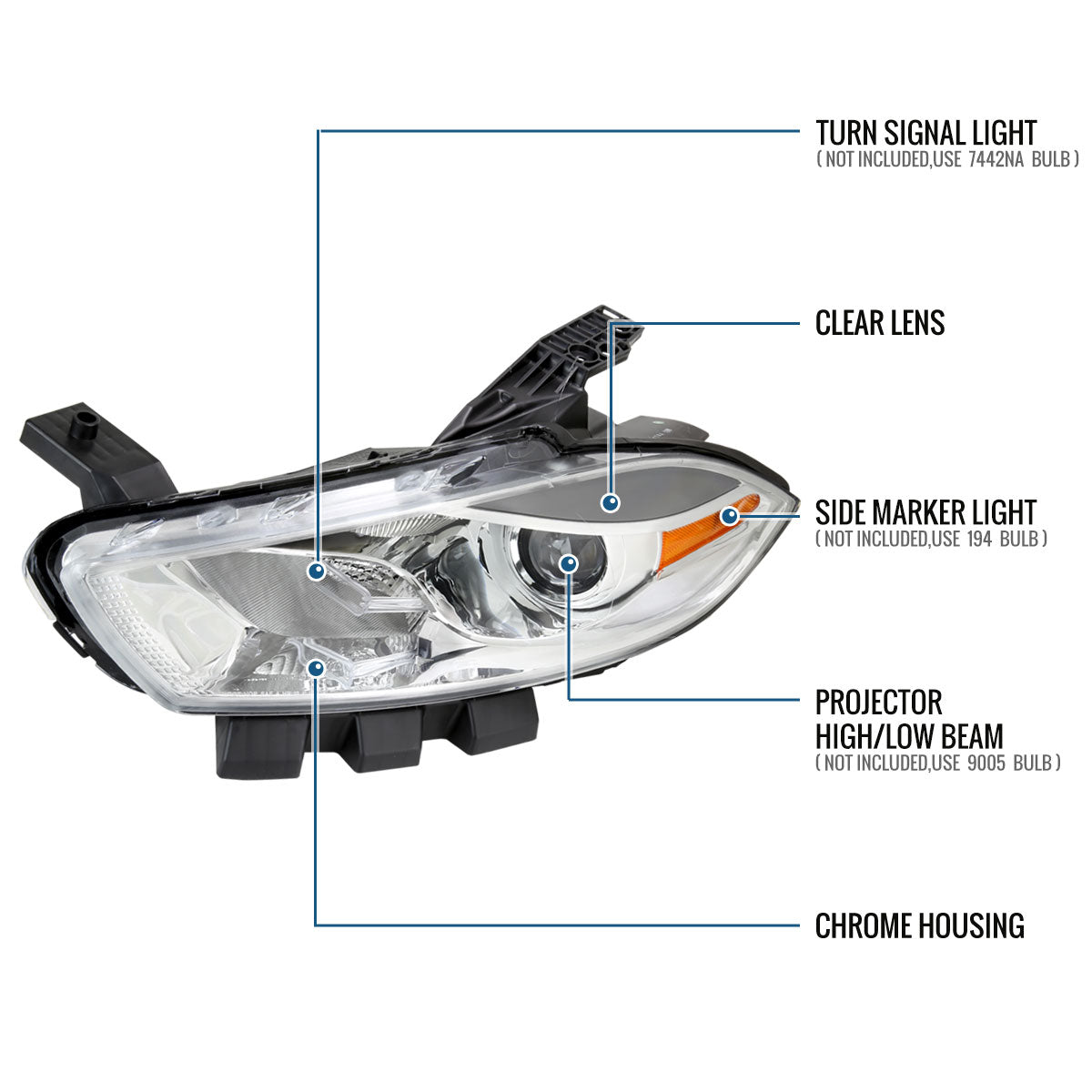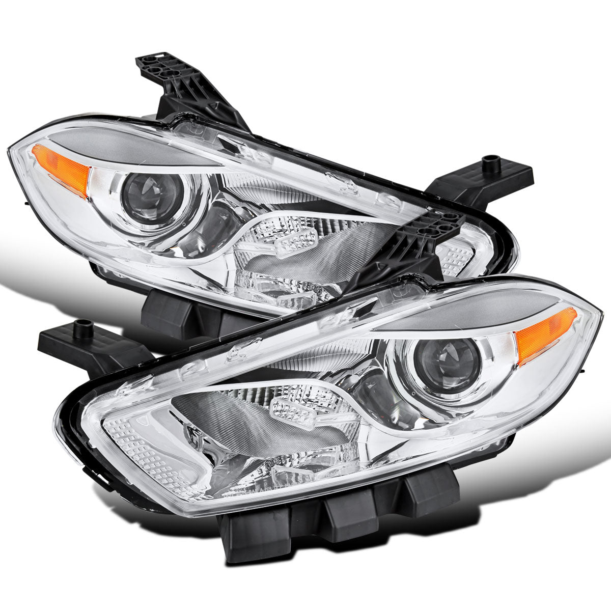 Ronnin - Fits 2013-2016 Dodge Dart Halogen Factory Replacement Projector Headlights Assembly Pair | Chrome