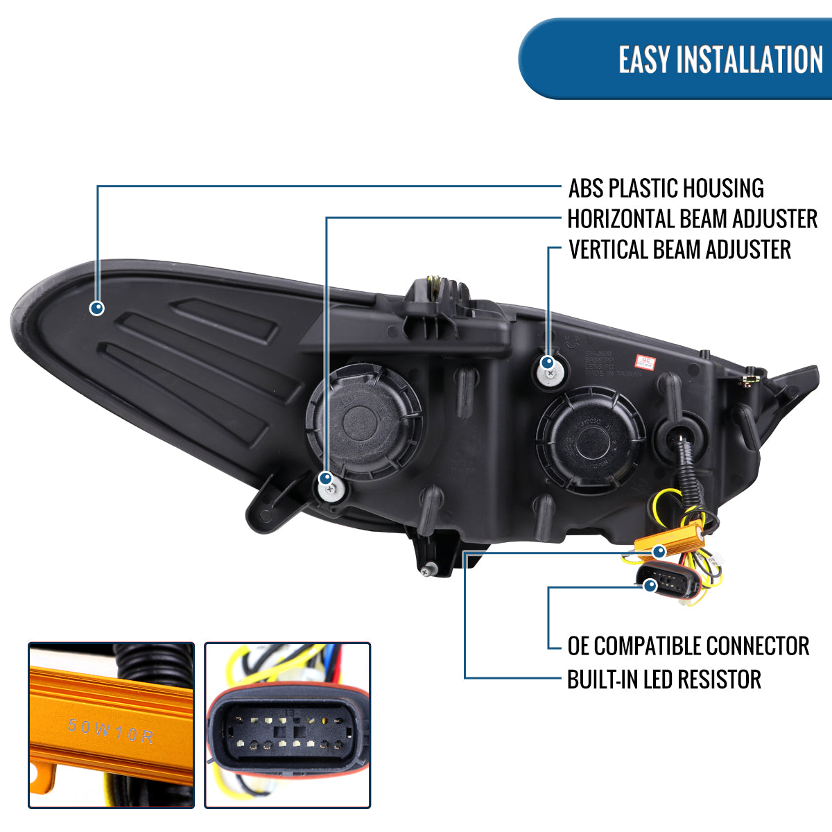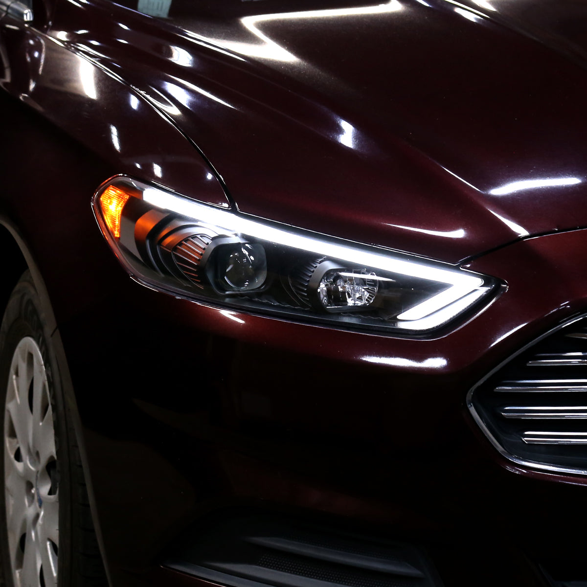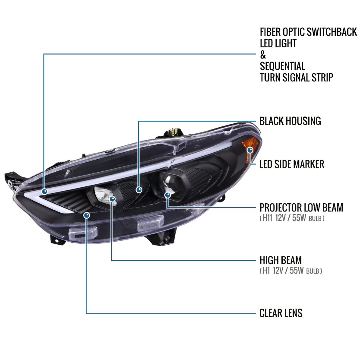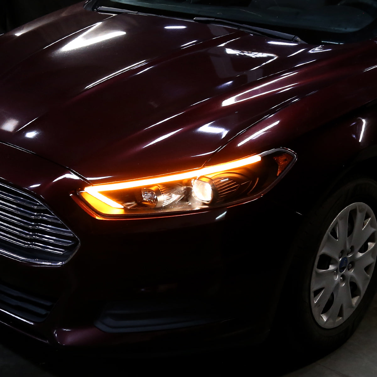 Ronnin - Fits 2013-2016 Ford Fusion LED Switchback Sequential Turn Signals Projector Halogen Headlights Upgrade Assembly Pair | Matte Black