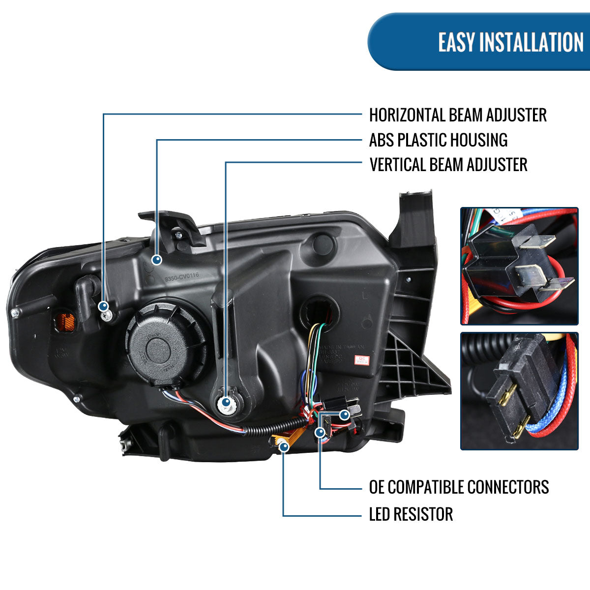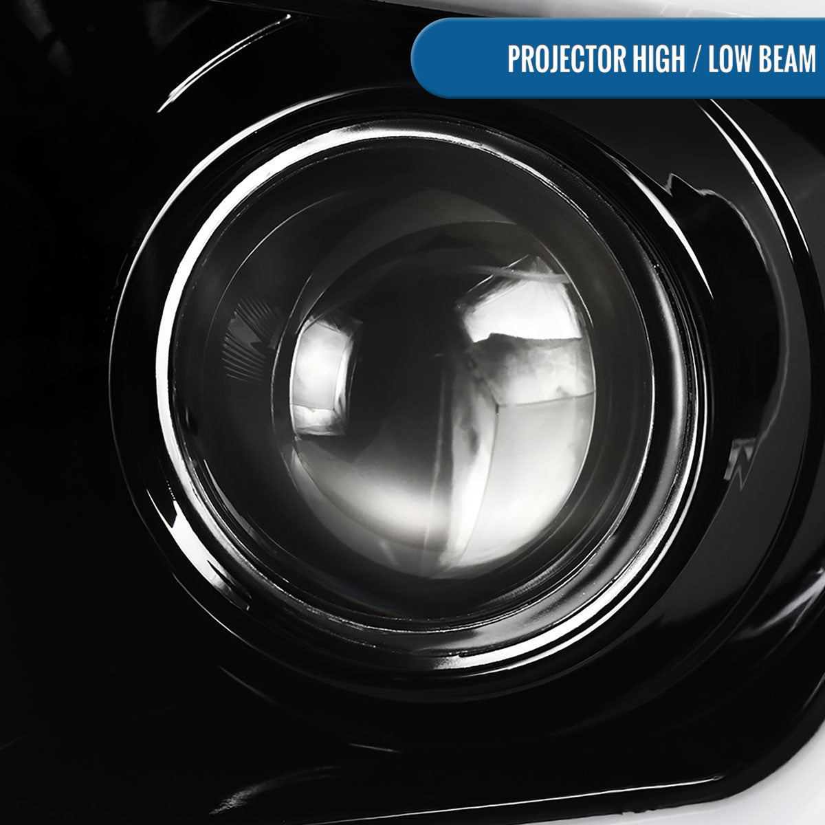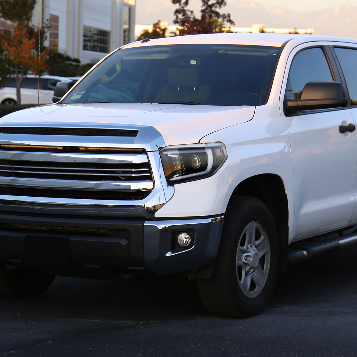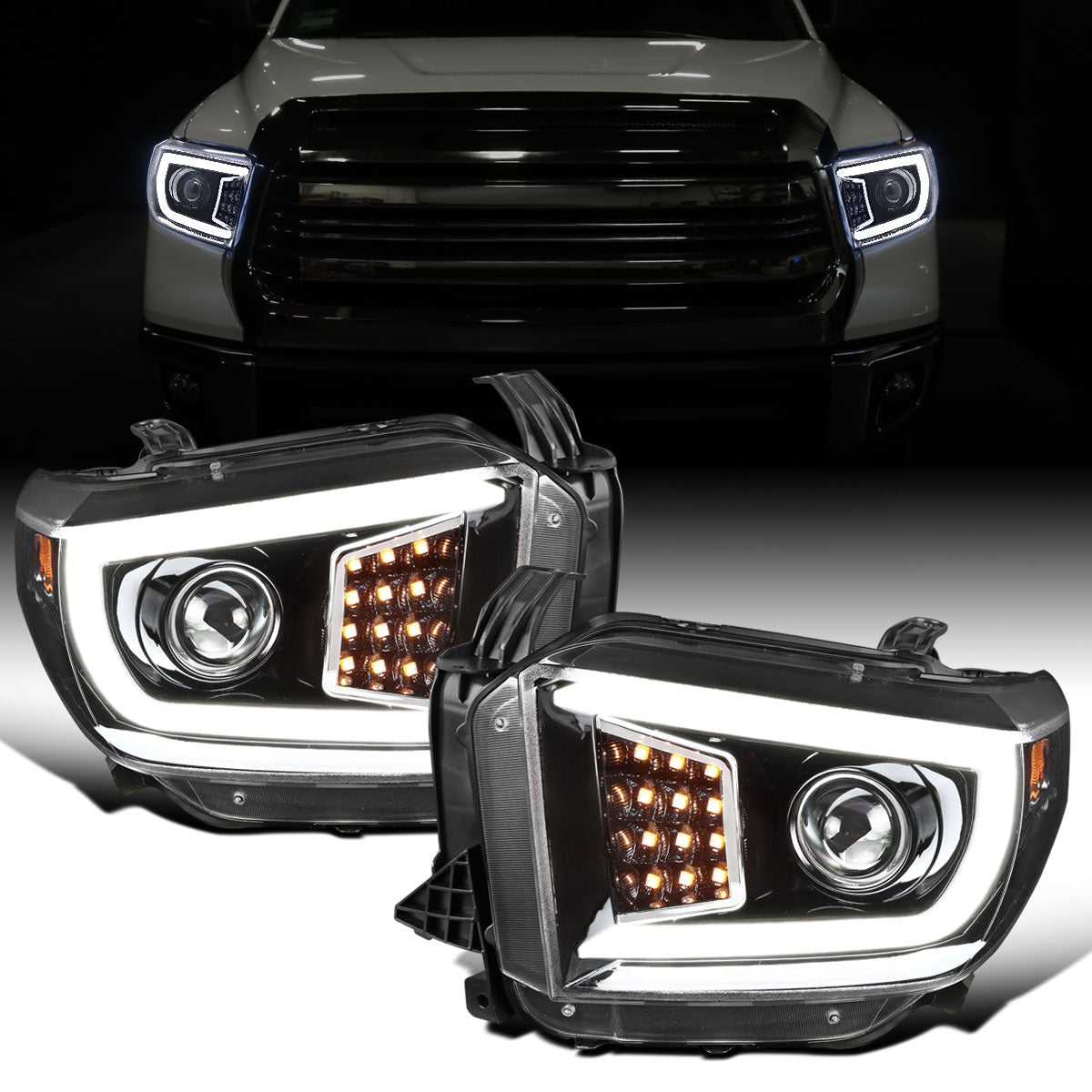 Ronnin - Fits 2014-2021 Toyota Tundra LED Sequential Turn Signals Halogen Projector Headlights Assembly Pair | Gloss Black