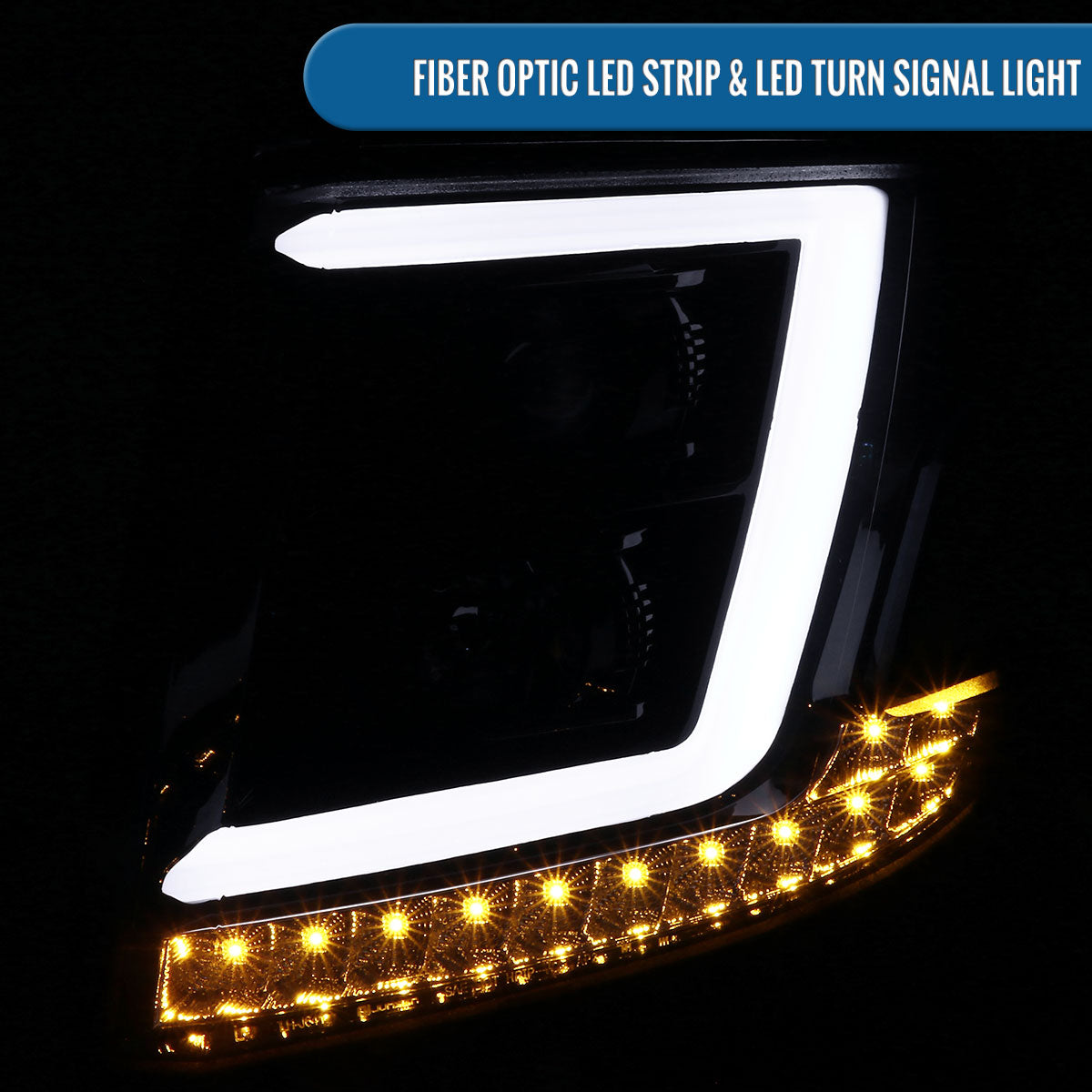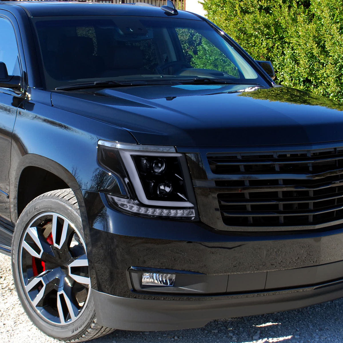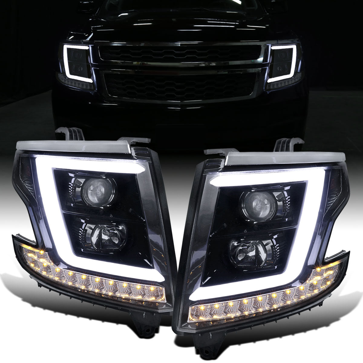 Ronnin - Fits 2015-2020 Chevy Tahoe Suburban 3500HD Upgraded Assembly LED Tube Projector Halogen Headlights Replacement Pair | Black Smoke