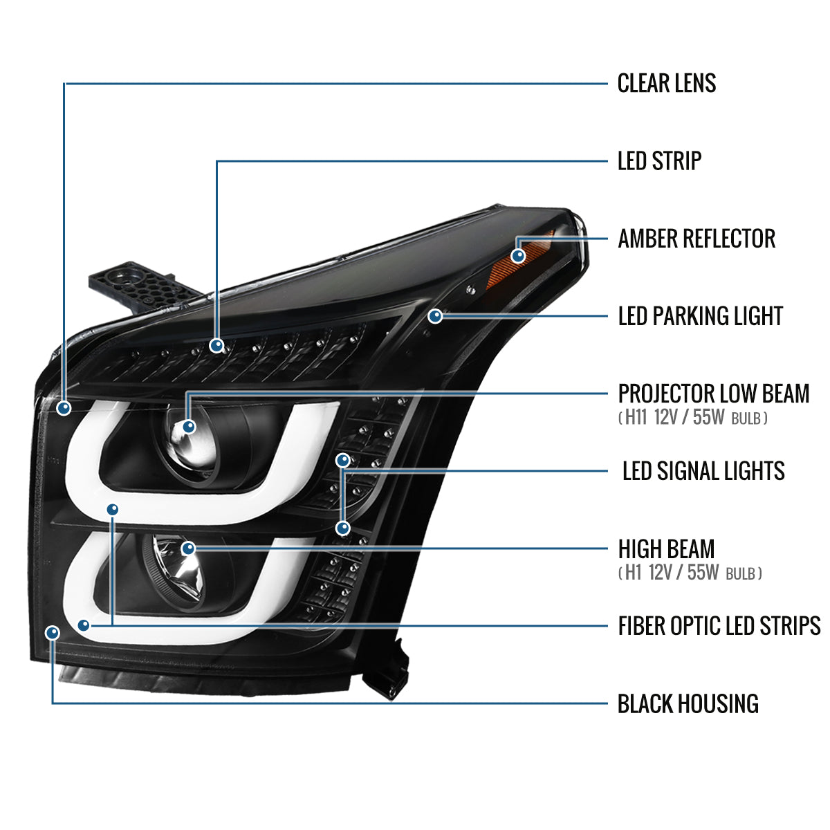 Ronnin - Fits 2015-2020 GMC Yukon/Yukon XL Upgrade Replacement LED Running Turn Signals Projector Headlights Assembly Pair | Black