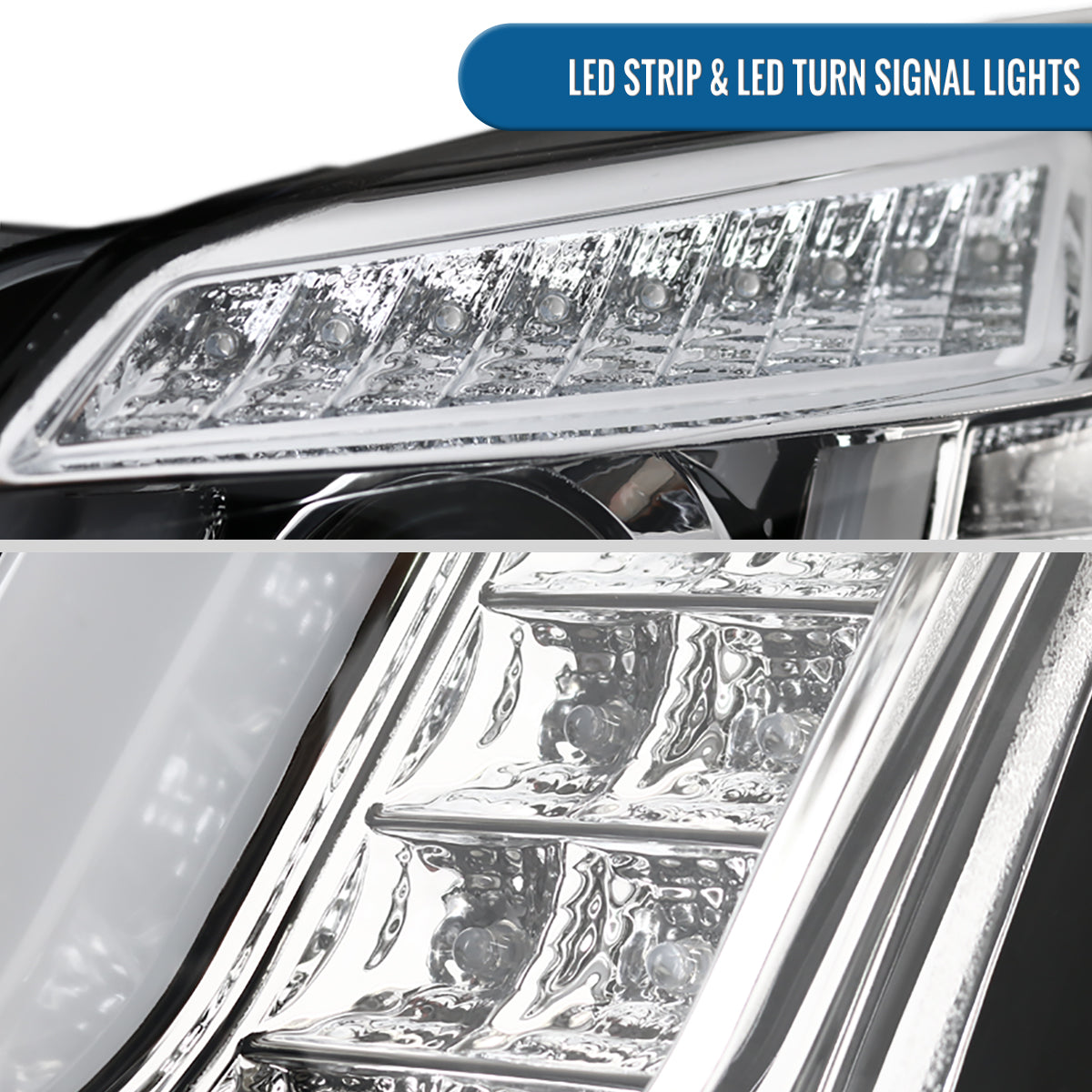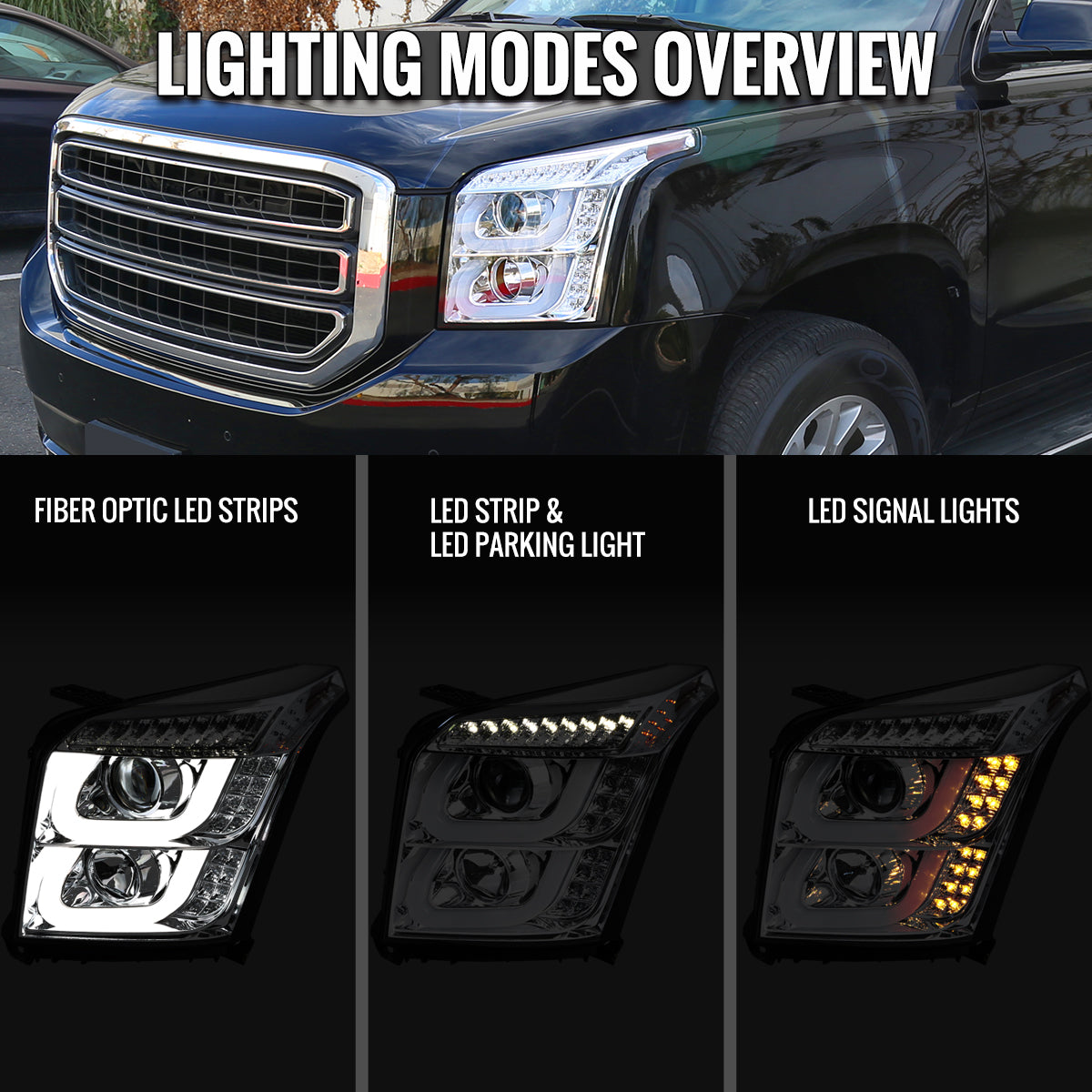 Ronnin - Fits 2015-2020 GMC Yukon/Yukon XL Upgrade Replacement LED Running Turn Signals Projector Headlights Assembly Pair | Chrome