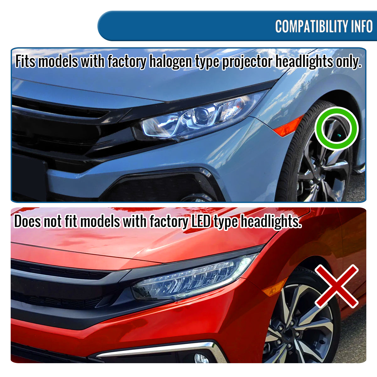Ronnin - Fits 2016-2021 Honda Civic Full LED Upgrade Replacement For Halogen Type Projector Headlights Switchback Sequential Turn Signals + Animated Startup Assembly Pair | Chrome