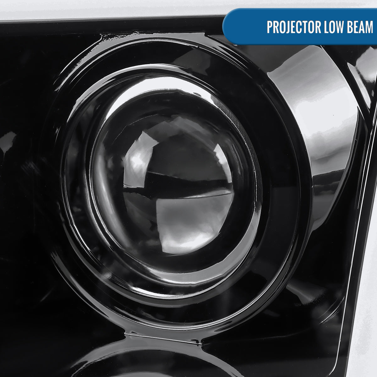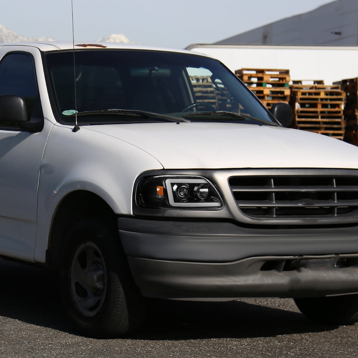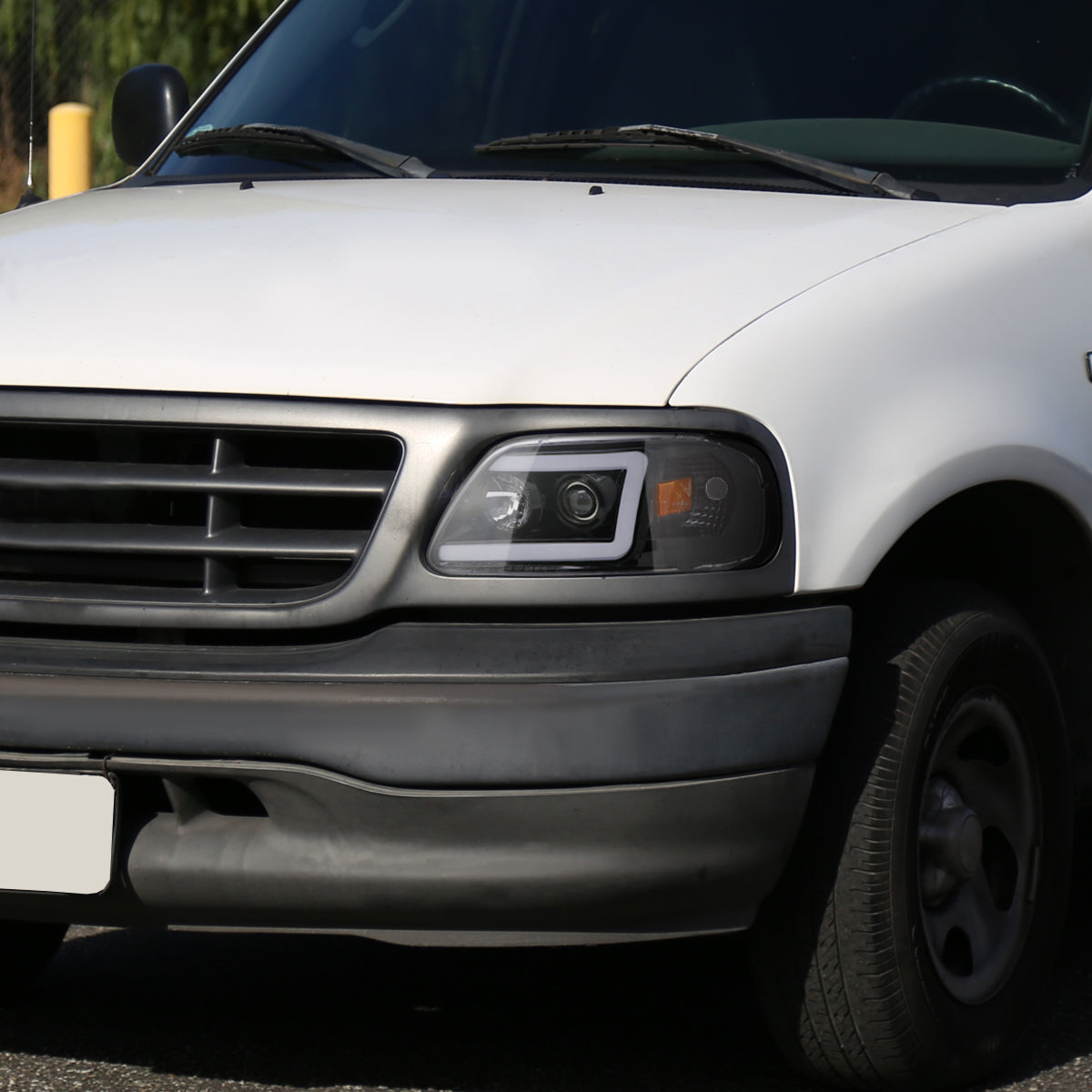 Ronnin - Fits 1997-2003 Ford F150 Expedition 2004 F150 Heritage All-in-One Upgraded Replacement LED Tube Running Lights Projector Headlights Assembly Pair | Gloss Black