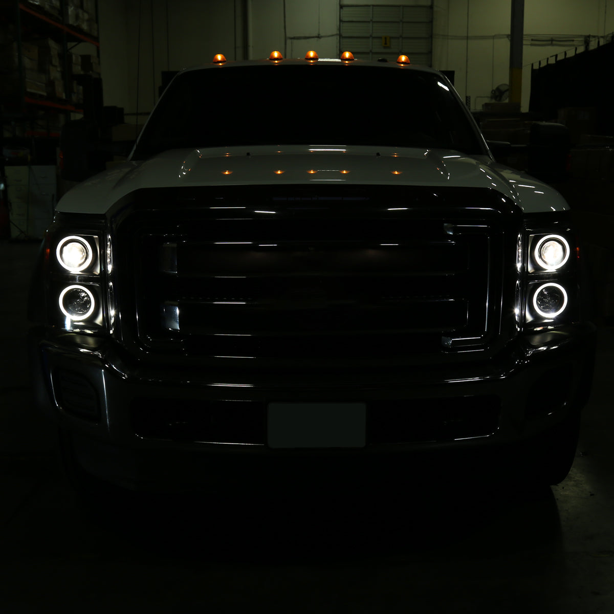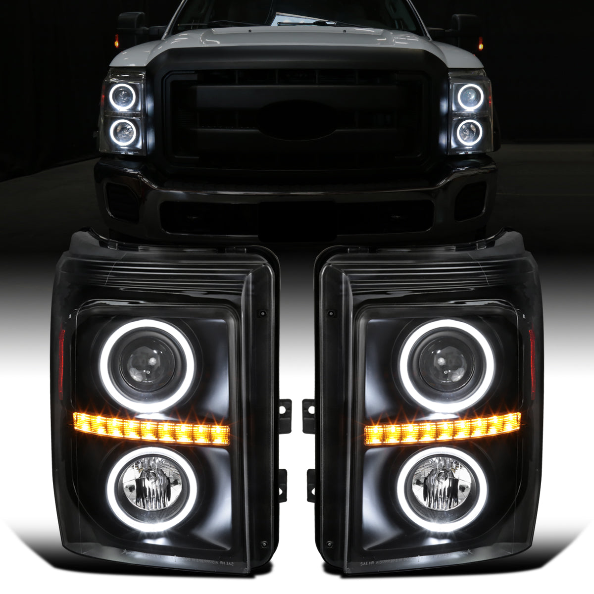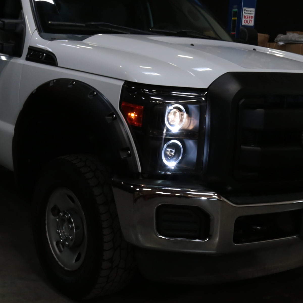 Ronnin - Fits 2011-2016 Ford F250 F350 F450 F550 Super Duty LED Dual Halo Rims Driving Lights Projector Headlights Assembly Pair | Black