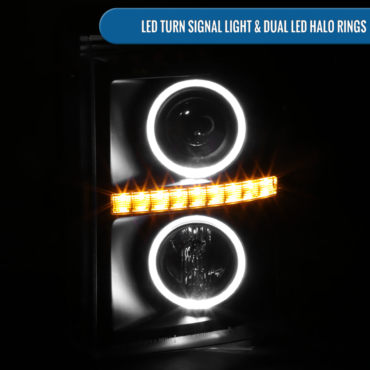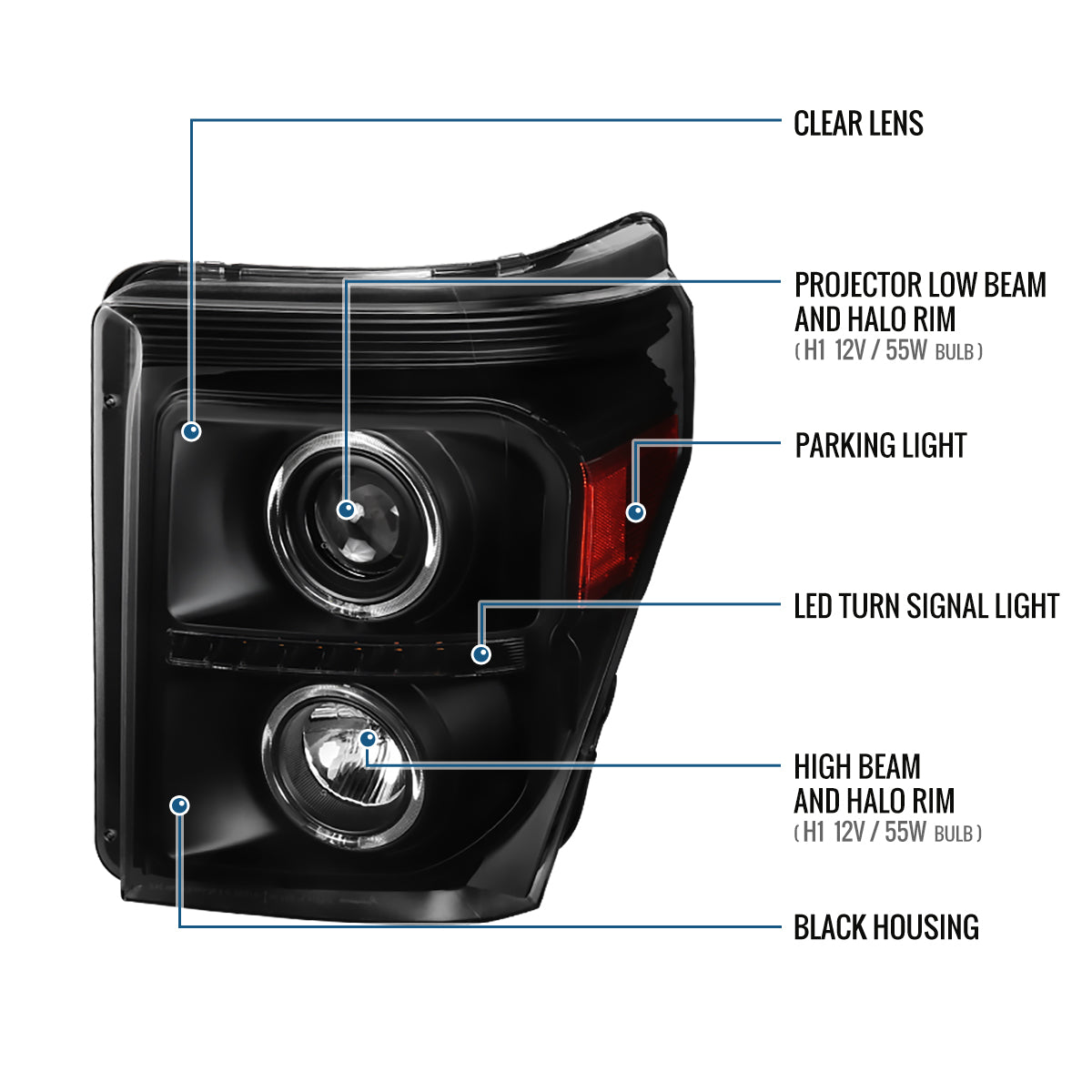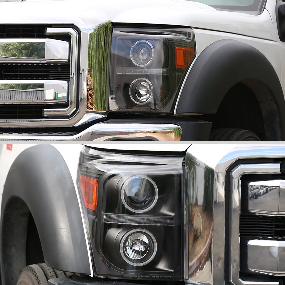 Ronnin - Fits 2011-2016 Ford F250 F350 F450 F550 Super Duty LED Dual Halo Rims Driving Lights Projector Headlights Assembly Pair | Black